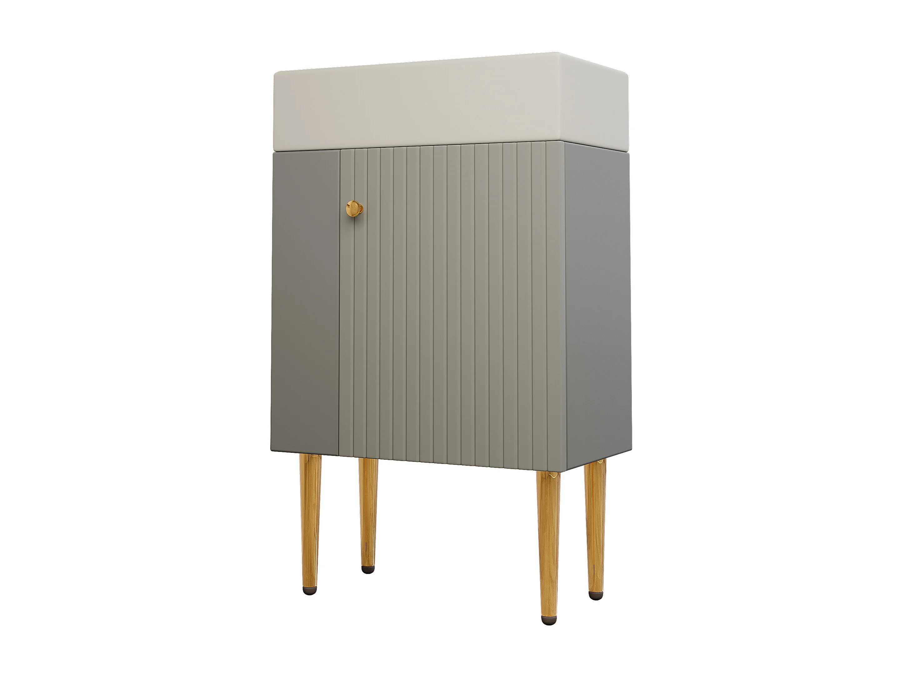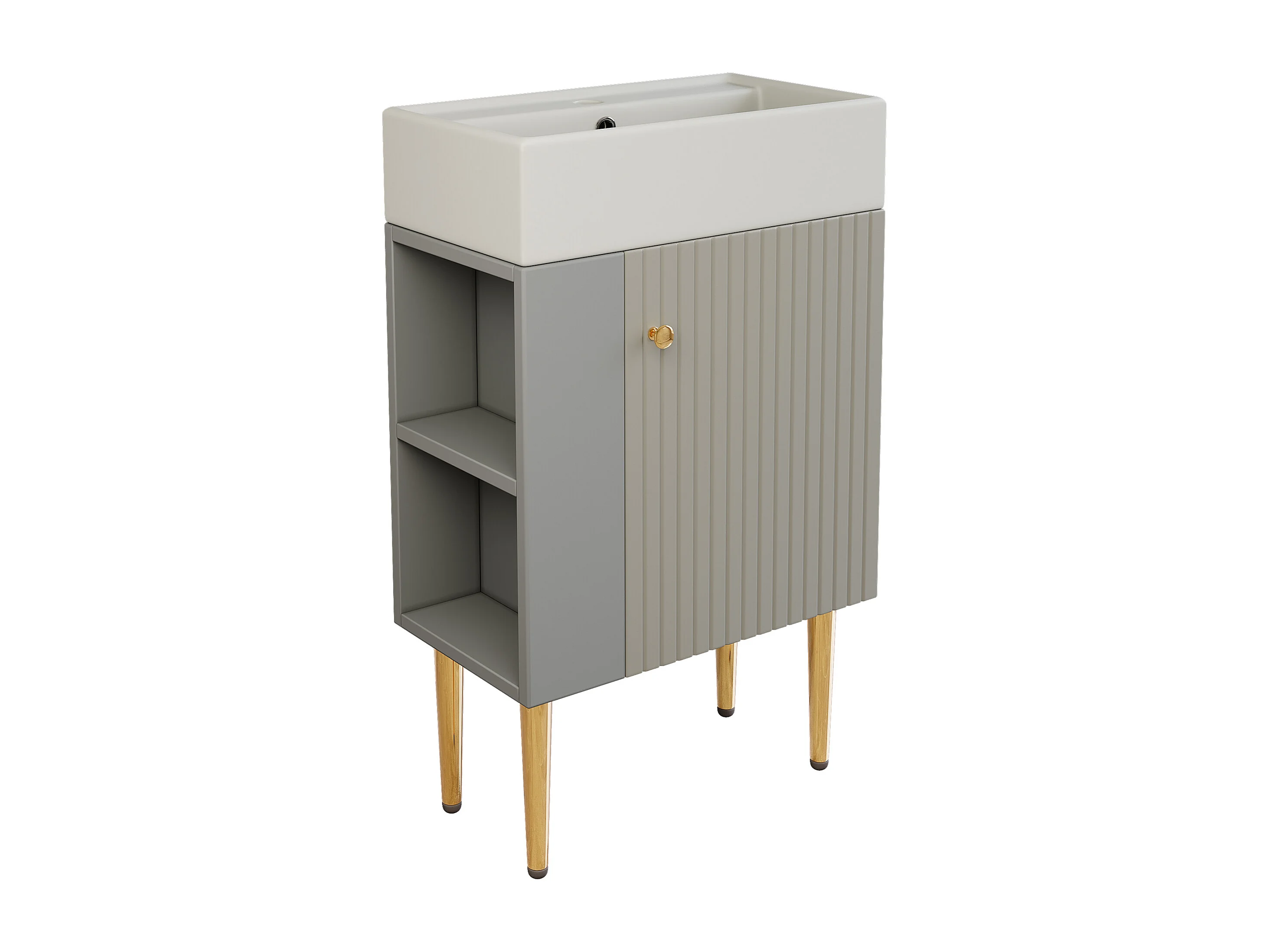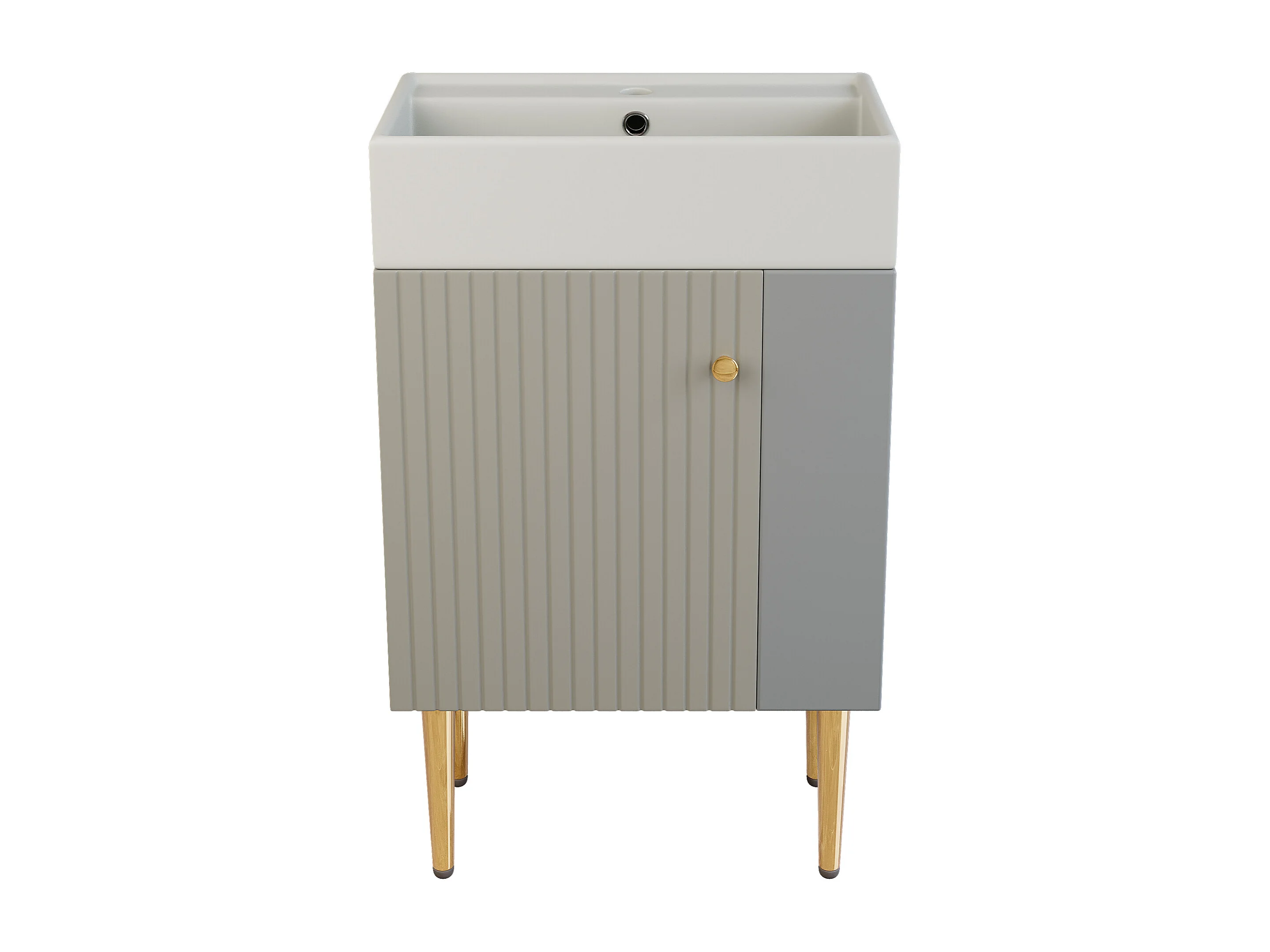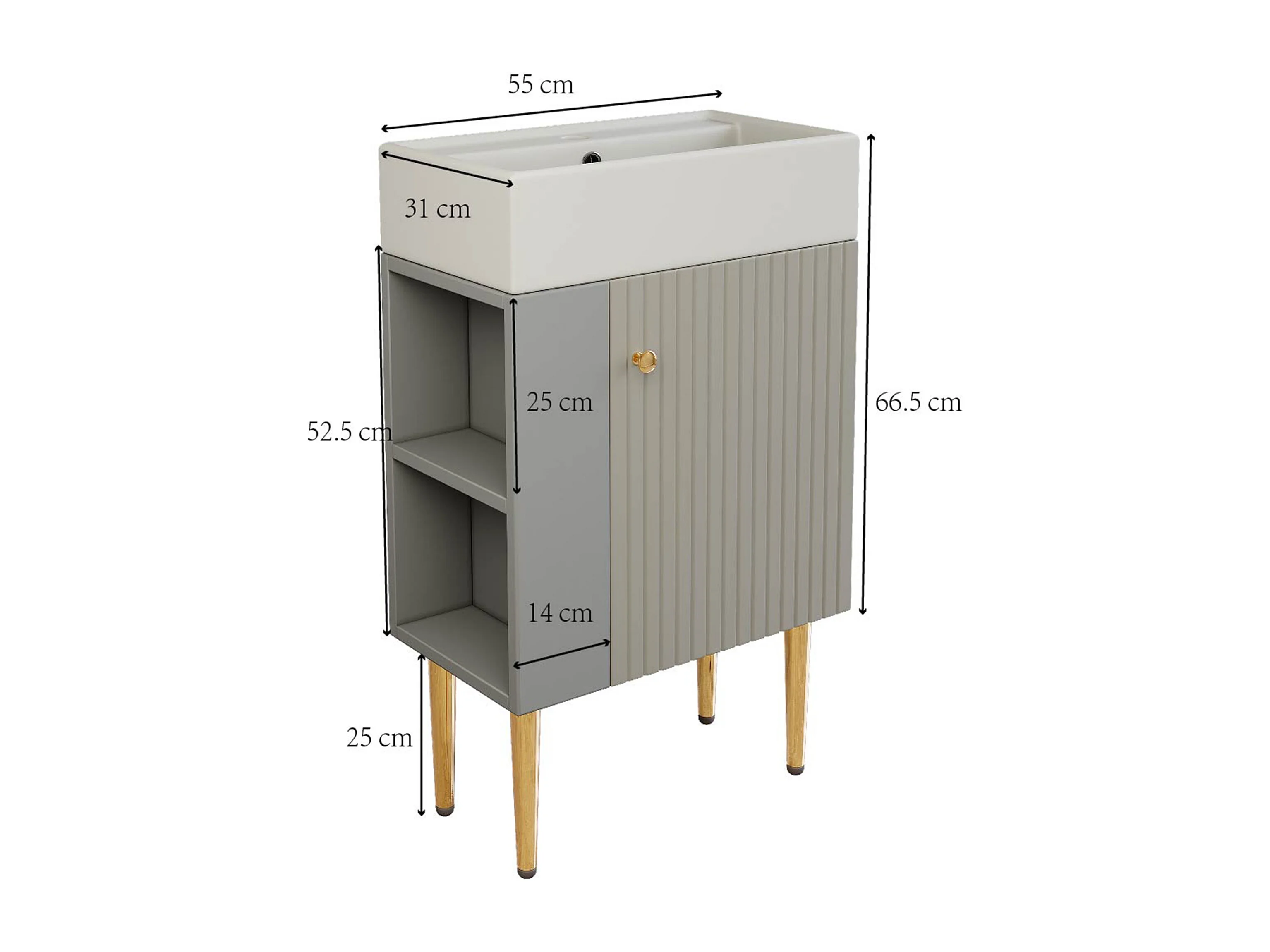 Meuble vasque moderne 55 x 31 x 91,5 cm avec rangement sous vasque, céramique blanc + MDF gris clair