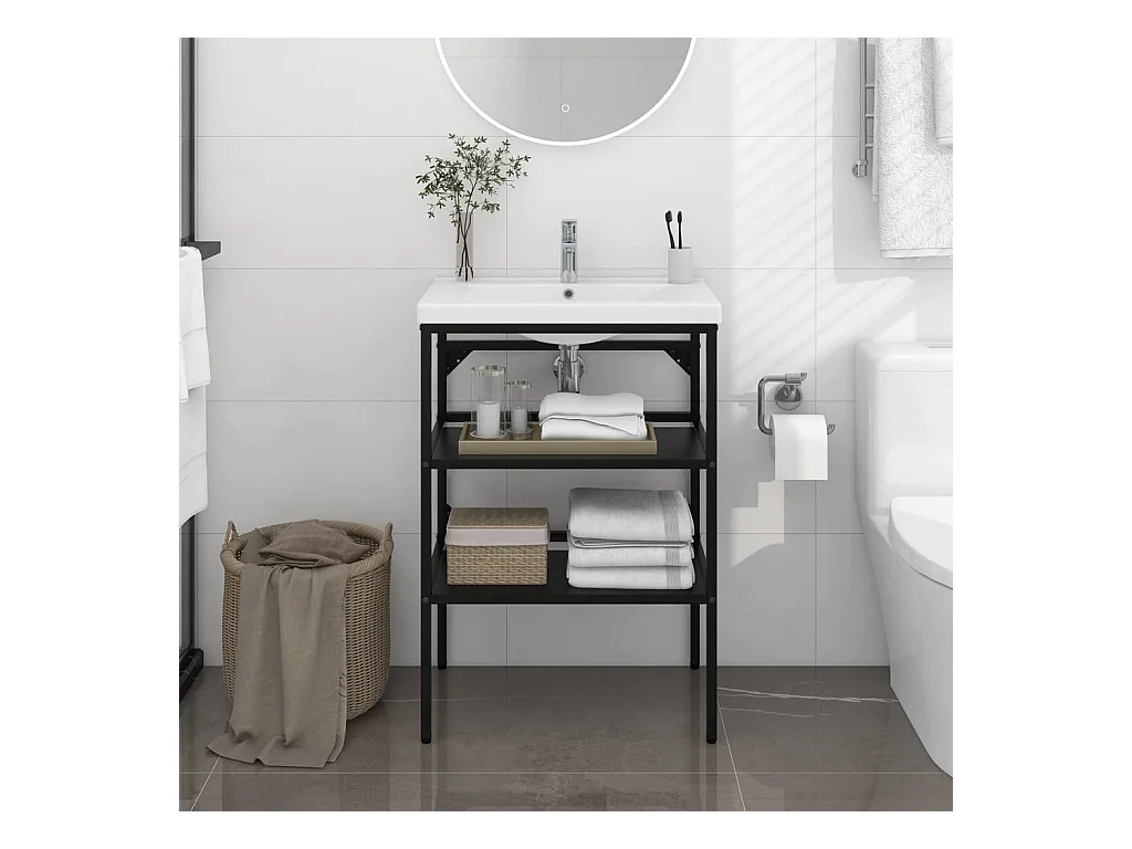 Meuble + vasque Noir 59x38x83 cm Fer FR100734