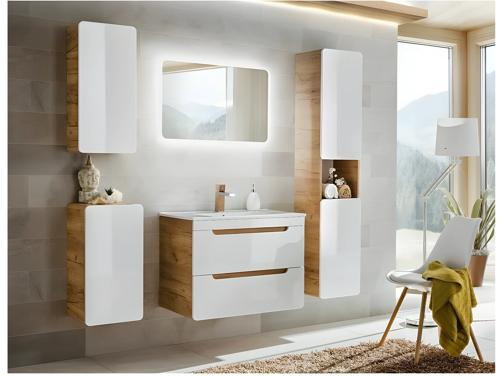 Meuble Vasque Salle de bain + Lavabo 80x46x59cm ARUBA BLANC 821 moderne de haute qualité
