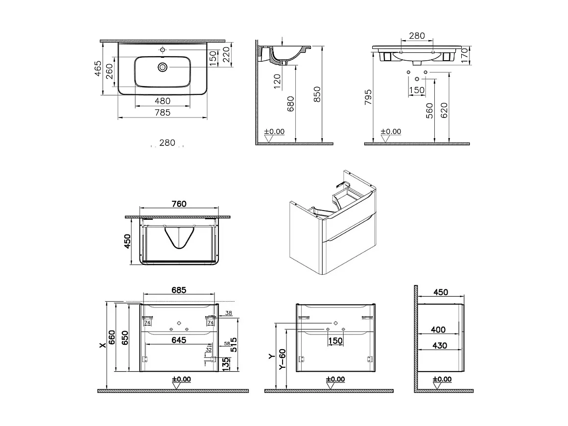 Meuble vasque suspendu VITRA Sento Round 80cm Vert mat + Colonne version droite