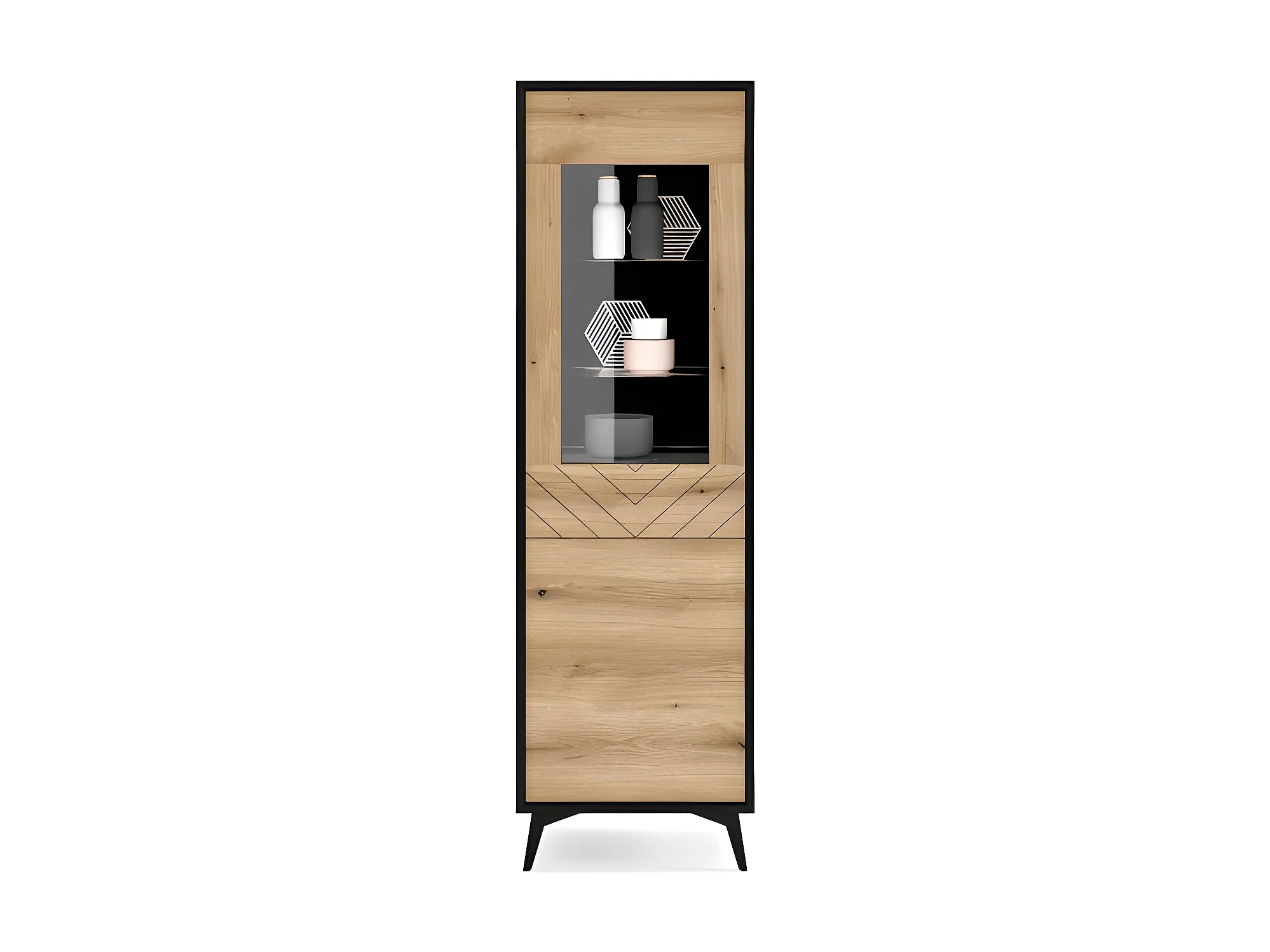 Meuble Vitrine de rangement sur pied DIAMANT W54 évoque chêne/noir 54x178x39cm