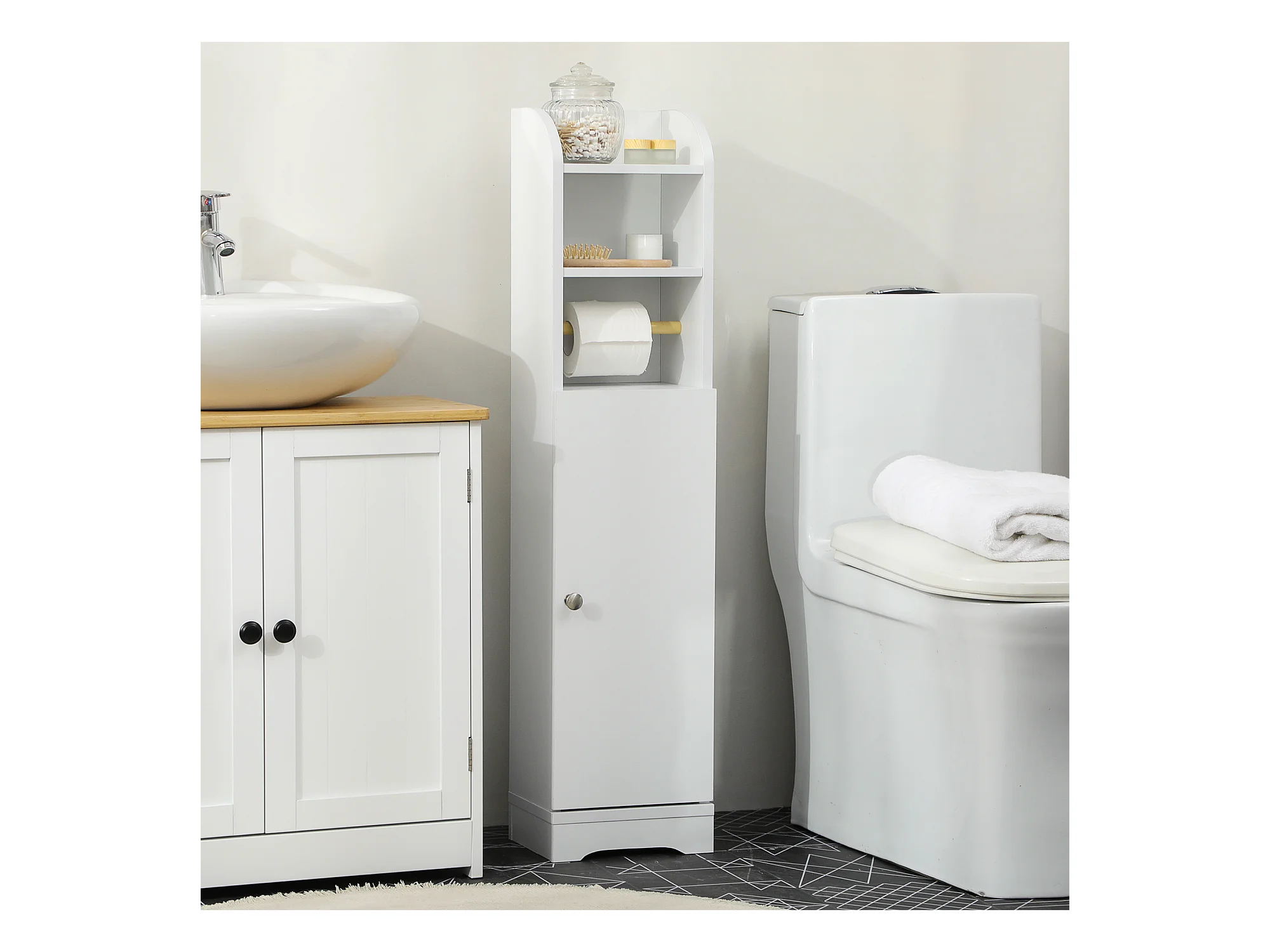 Meuble WC armoire toilette - porte, 2 étagères, niche, support papier - dim. 23L x 18l x 100H cm - blanc