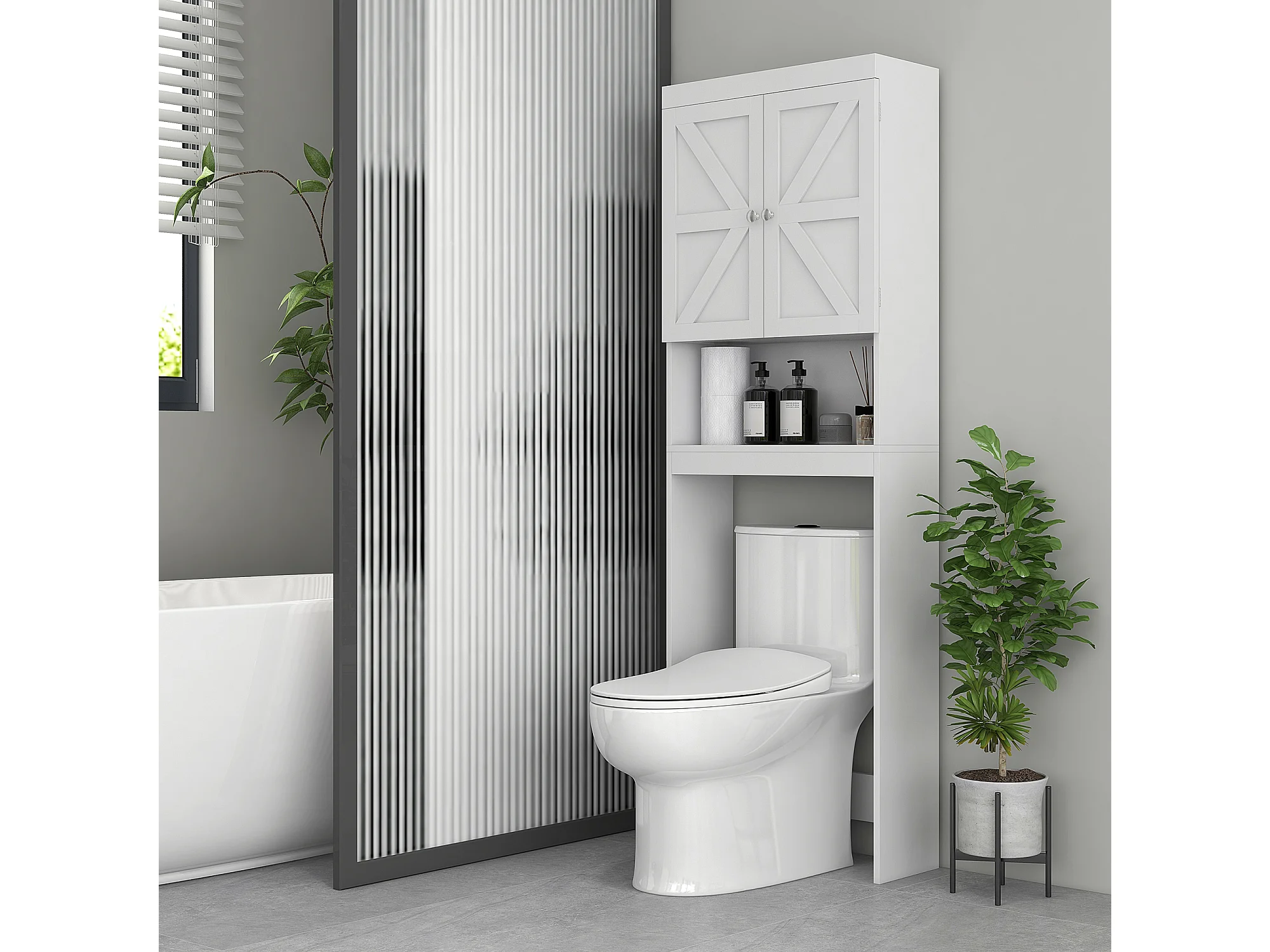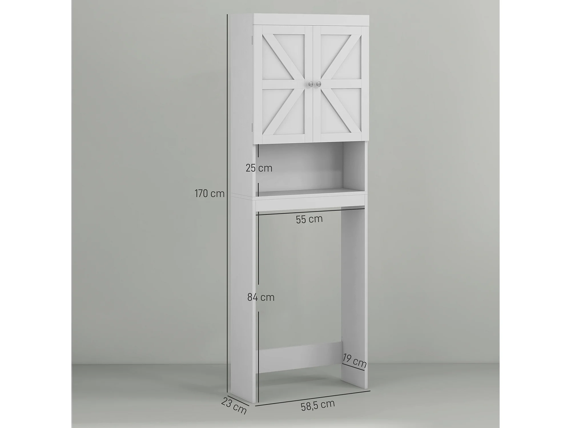 Meuble WC - rangement au-dessus des toilettes - 2 portes croisillons, niche - blanc