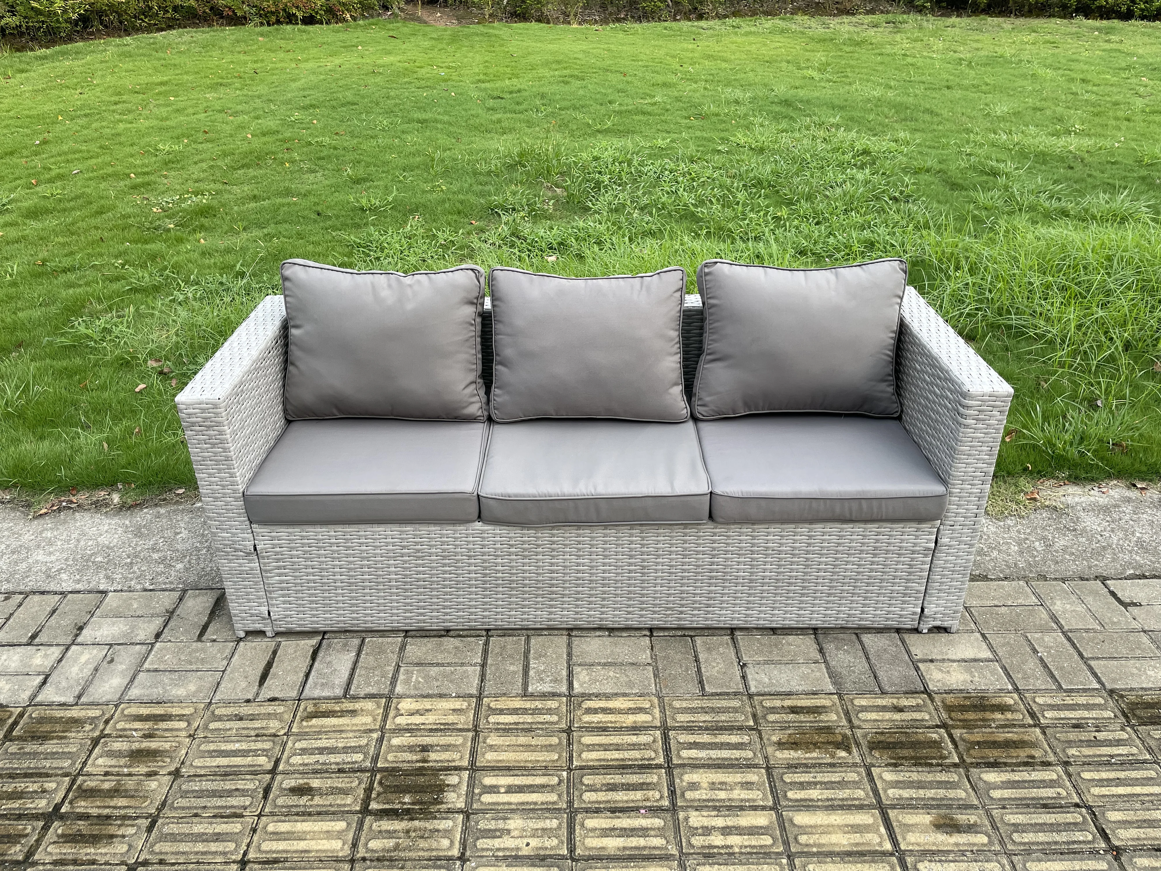 Meubles à manger de jardin en rotin 3 canapé, et 2 Table d'appoint, 2 Tabourets pour Pelouse Terrasse Intérieure Gris Clair