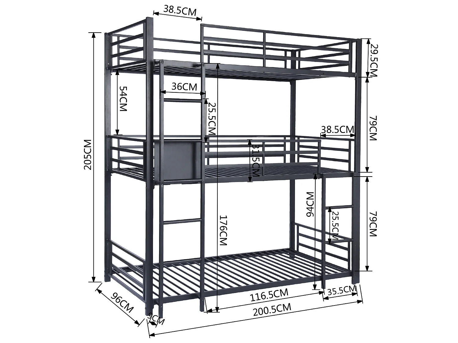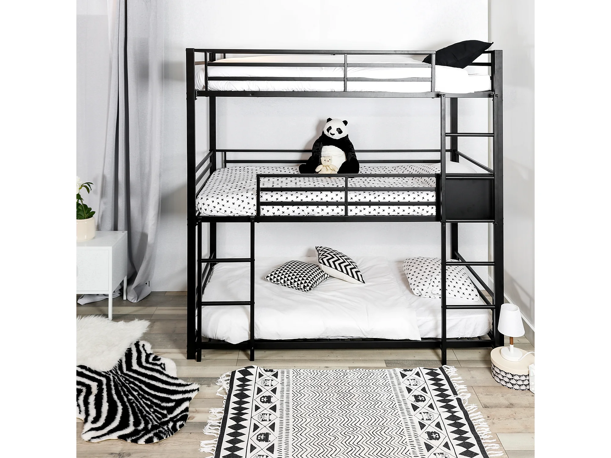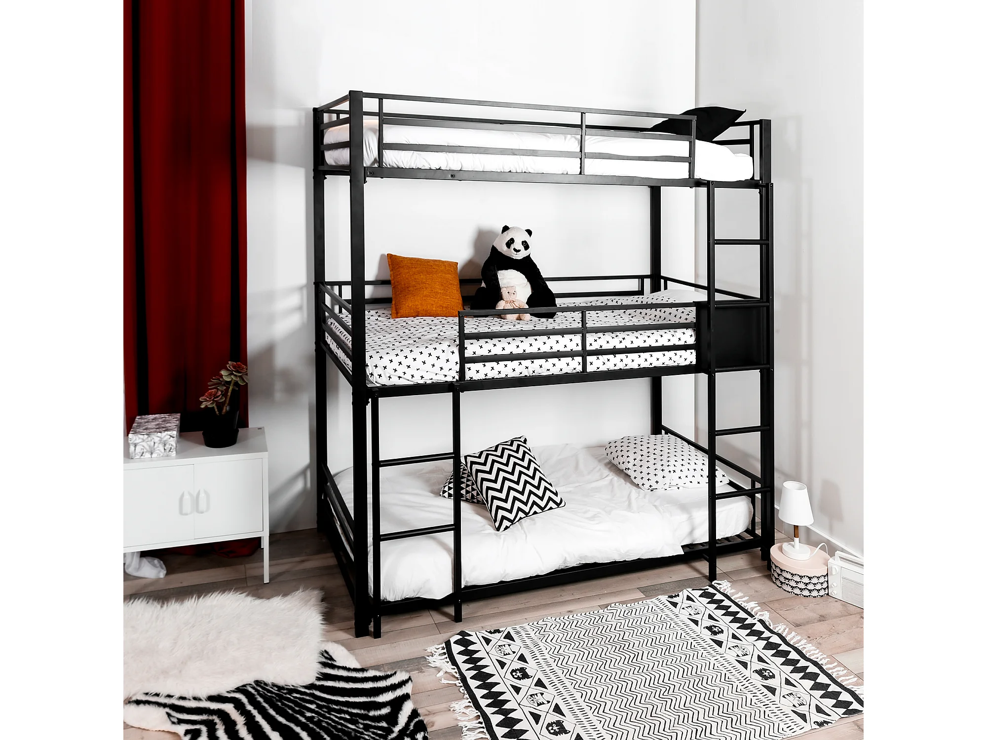 Meubles Cosy Lit superposés Lit surélevé pour 3 Personnes Sommier inclus 90 x 190 cm Métal laqué Noir Style Industriel