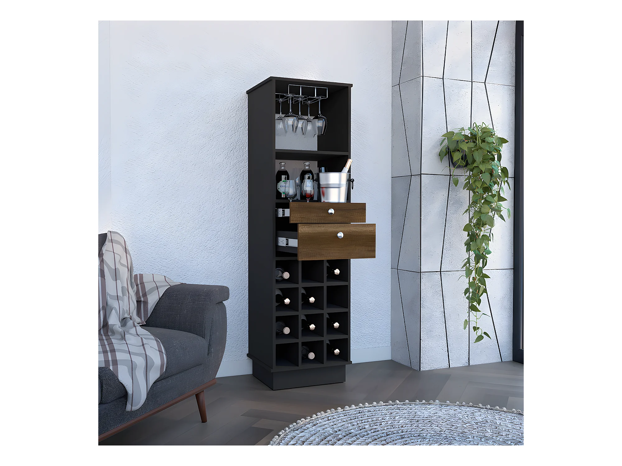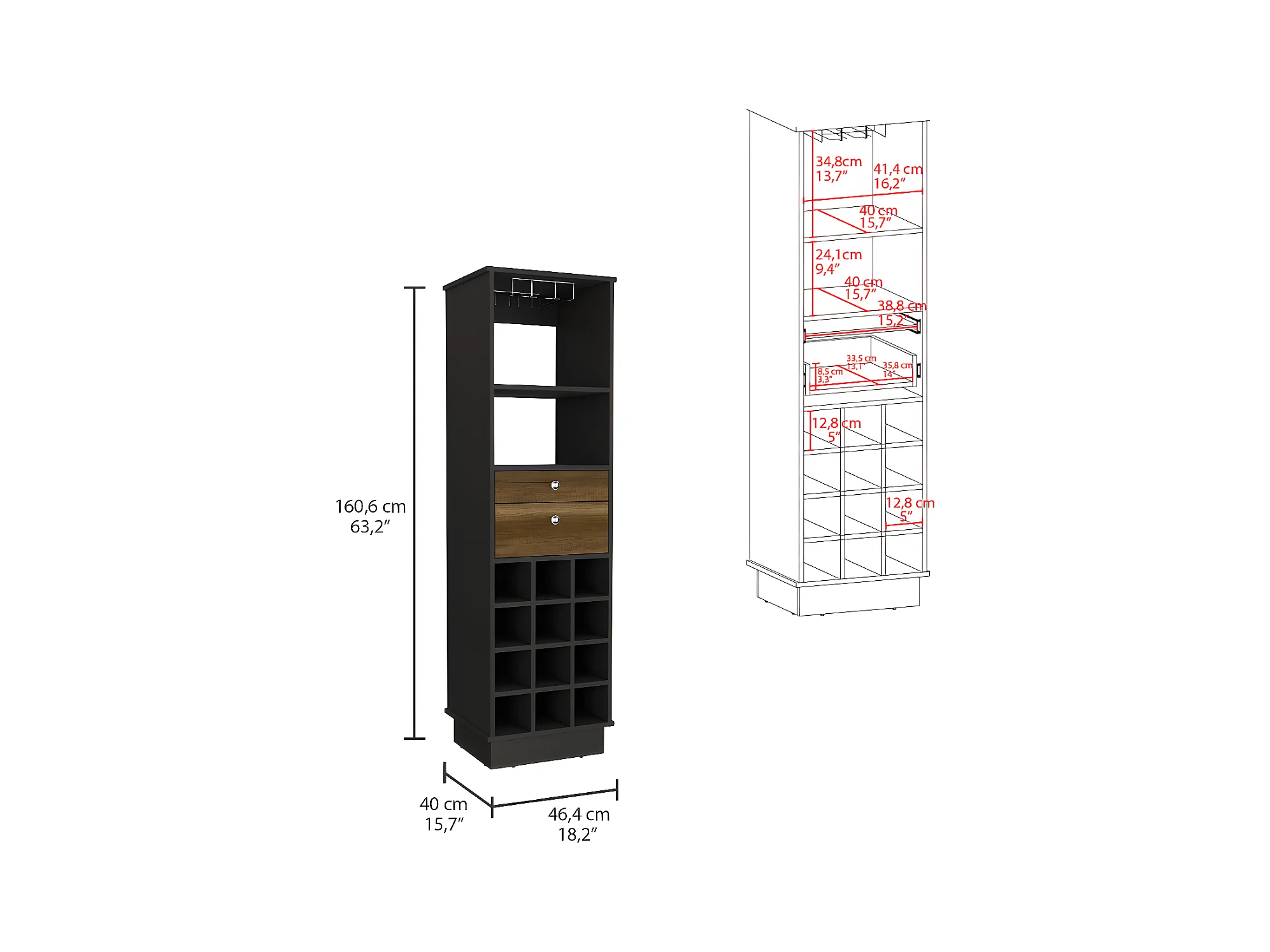 Meubles de bar classiques avec cubes de bouteilles, 160,6 cm à x 46,4 cm le x 40 cm P, caramel / wengue