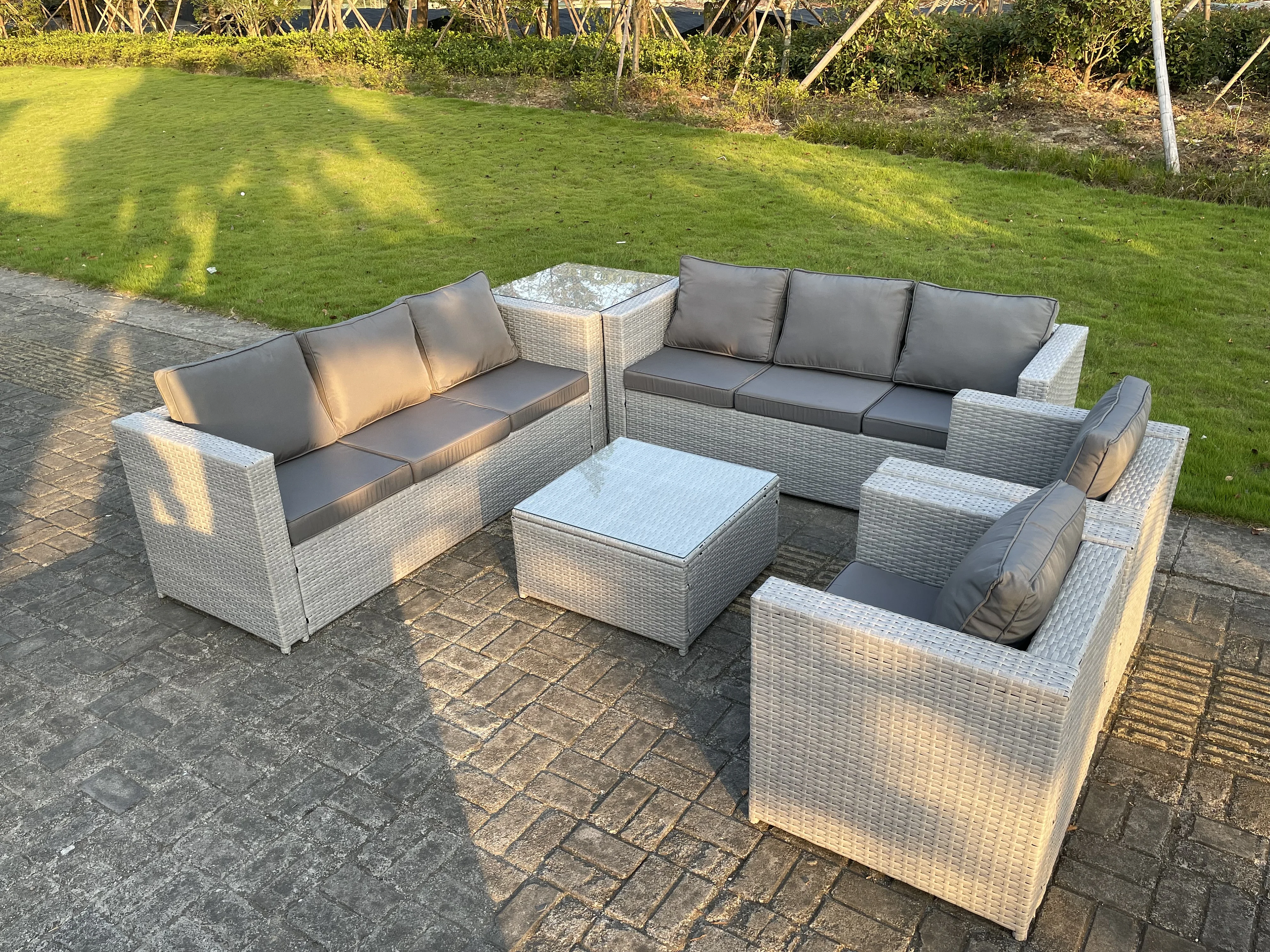 Meubles de Jardin en rotin ave 2 Fauteuil canapé Table d'appoint Table basse Carrée Gris Clair