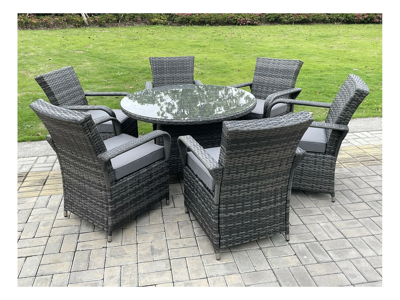 Meubles de Jardin en rotin table à manger et chaises Wicker patio extérieur 6 chaises plus table ronde