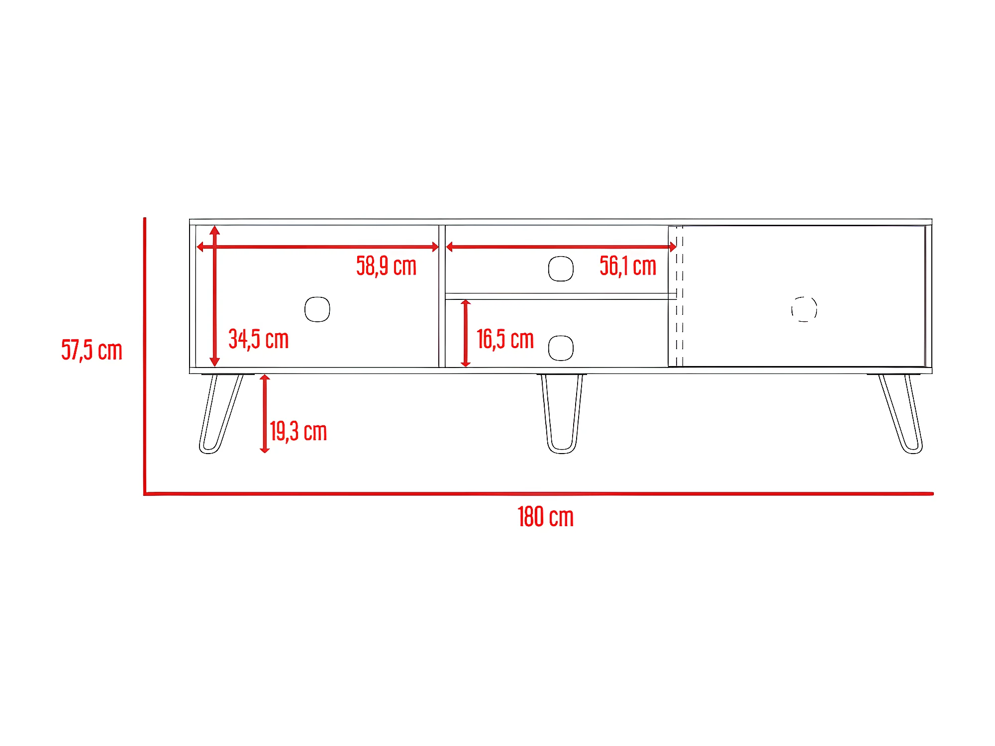 Meubles de télévision Z180 Andorra avec capacité pour la télévision 70 pouces, 57,5 ​​cm à x 180 cm le x 35 cm P, Le noyer