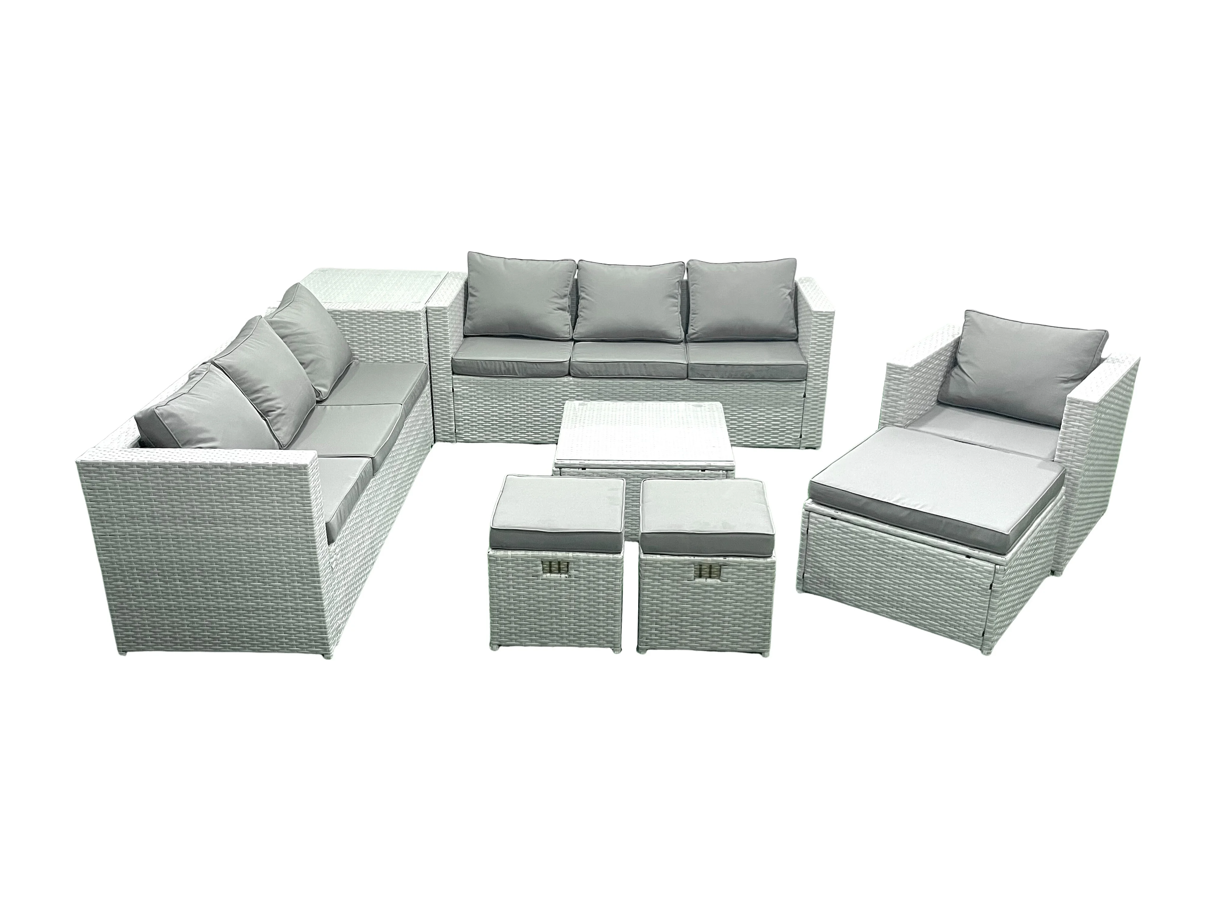 Meubles d'extérieur en rotin avec Fauteuil Table basse carrée 3 Tabourets Table d'appoint Gris clair mixte