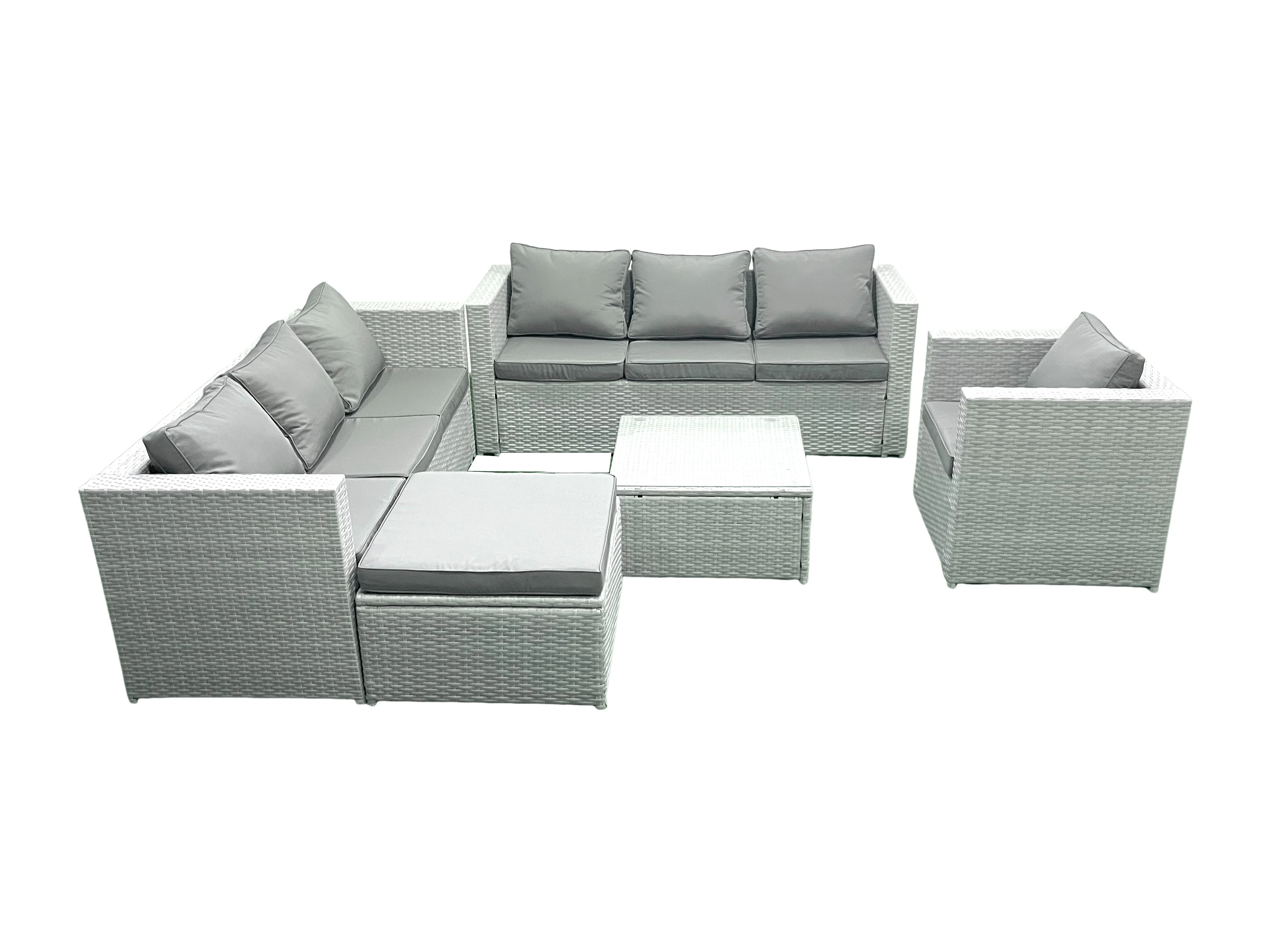 Meubles d'extérieur en rotin avec Fauteuil Table basse carrée Grand tabouret Gris clair mixte
