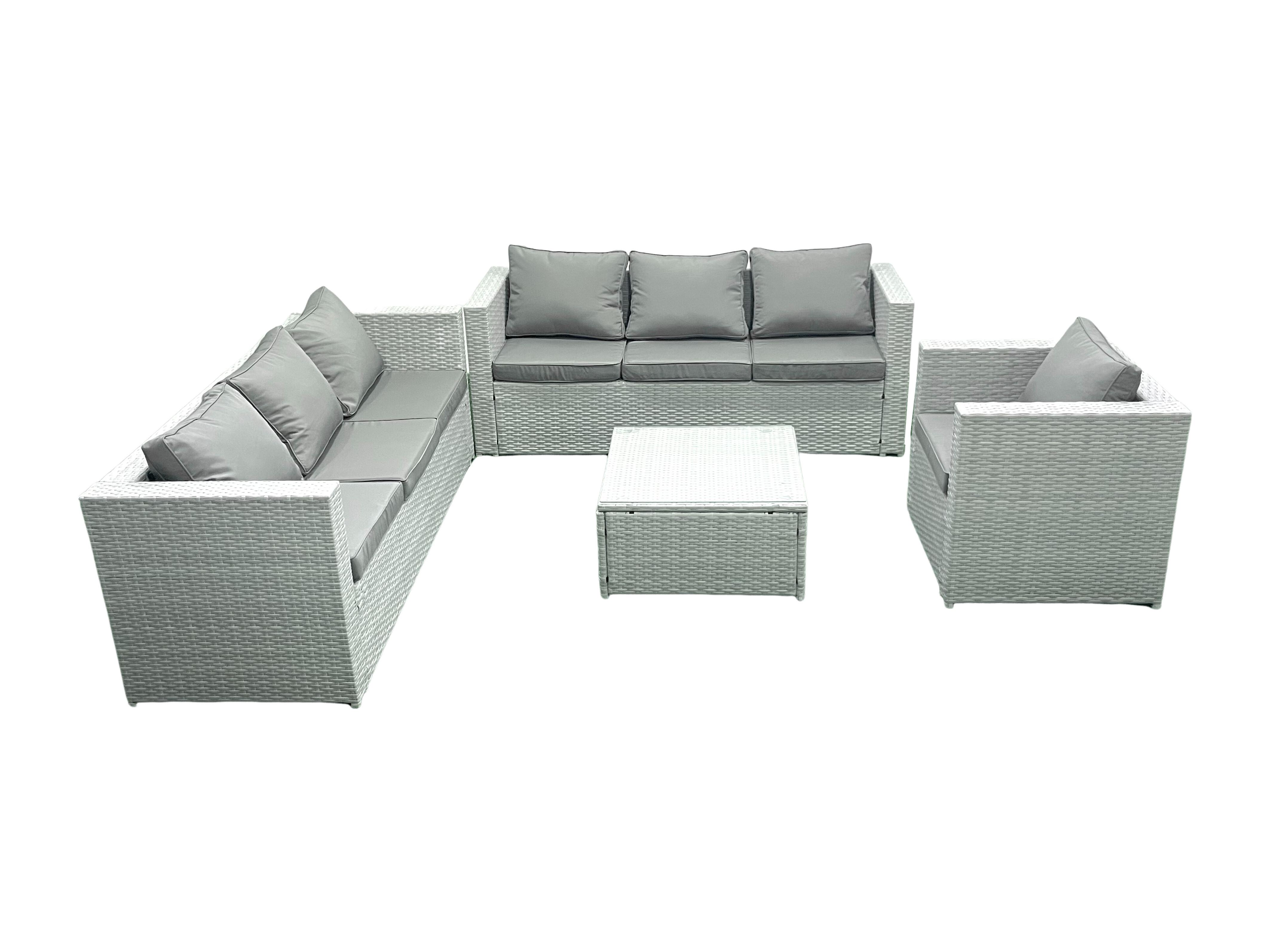 Meubles d'extérieur en rotin avec Fauteuil Table basse carrée Gris clair mixte
