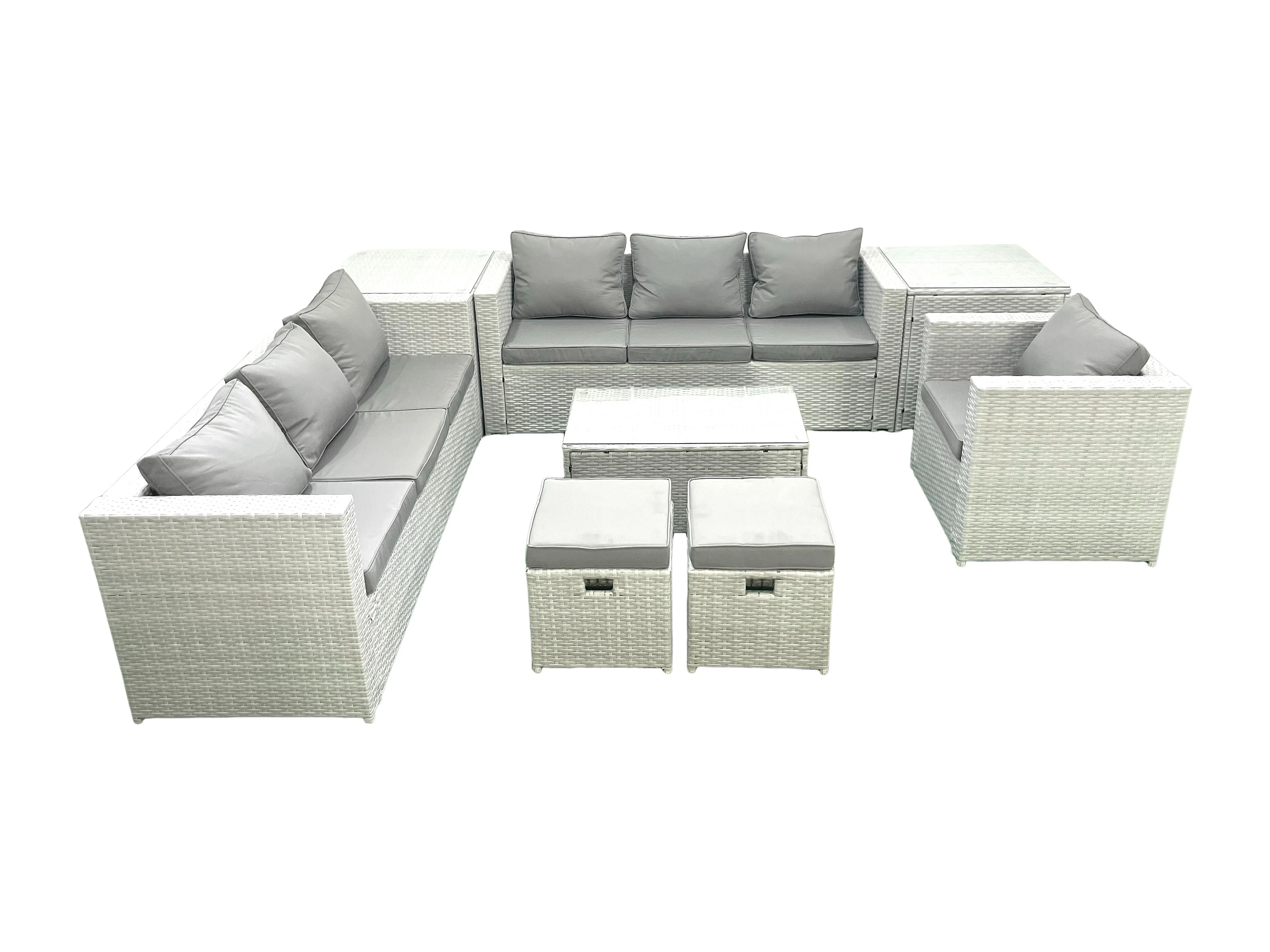 Meubles d'extérieur en rotin avec Fauteuil Table basse oblongue 2 Petits tabourets 2 Tables d'appoint Gris clair mixte