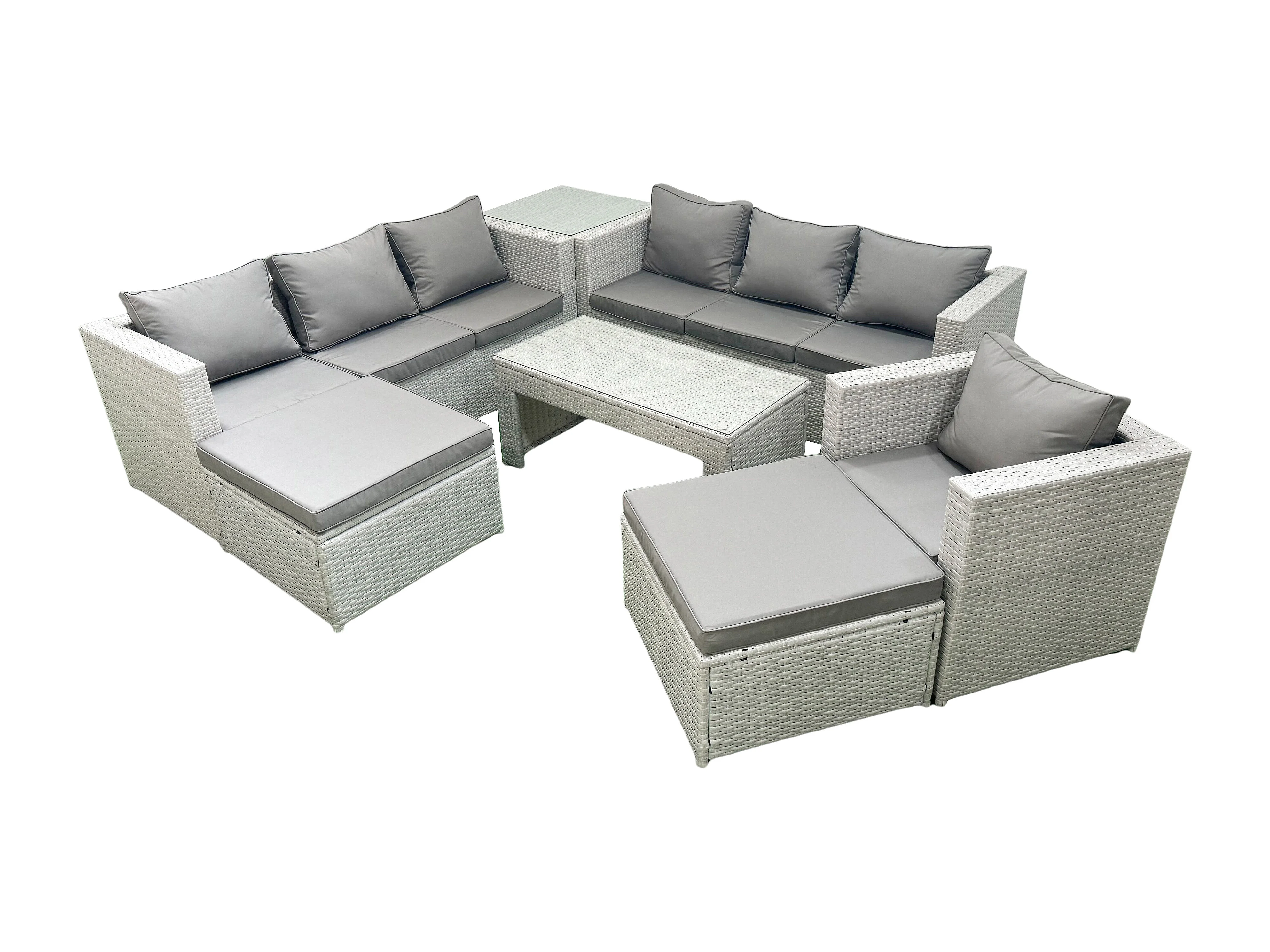 Meubles d'extérieur en rotin avec Table basse oblongue Fauteuil 2 Grand tabourets Table d'appoint Gris clair mixte