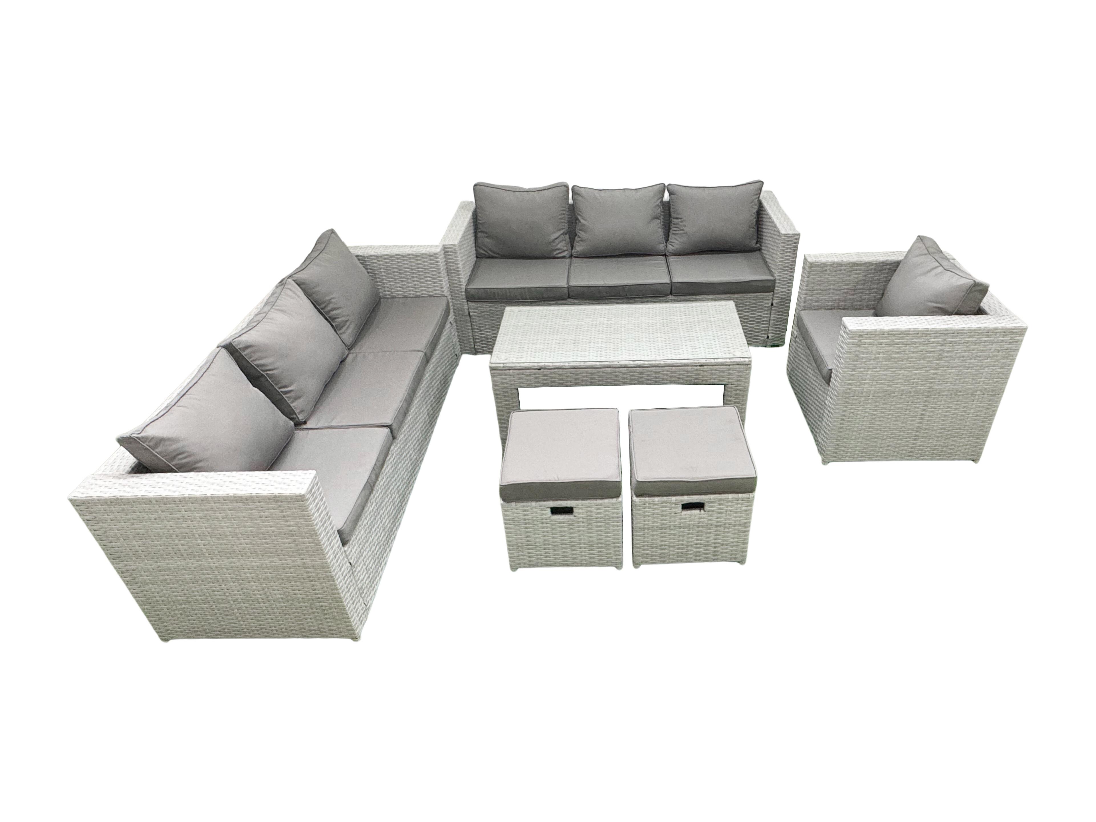 Meubles d'extérieur en rotin avec Table basse oblongue Fauteuil 2 Petits tabourets Gris clair mixte