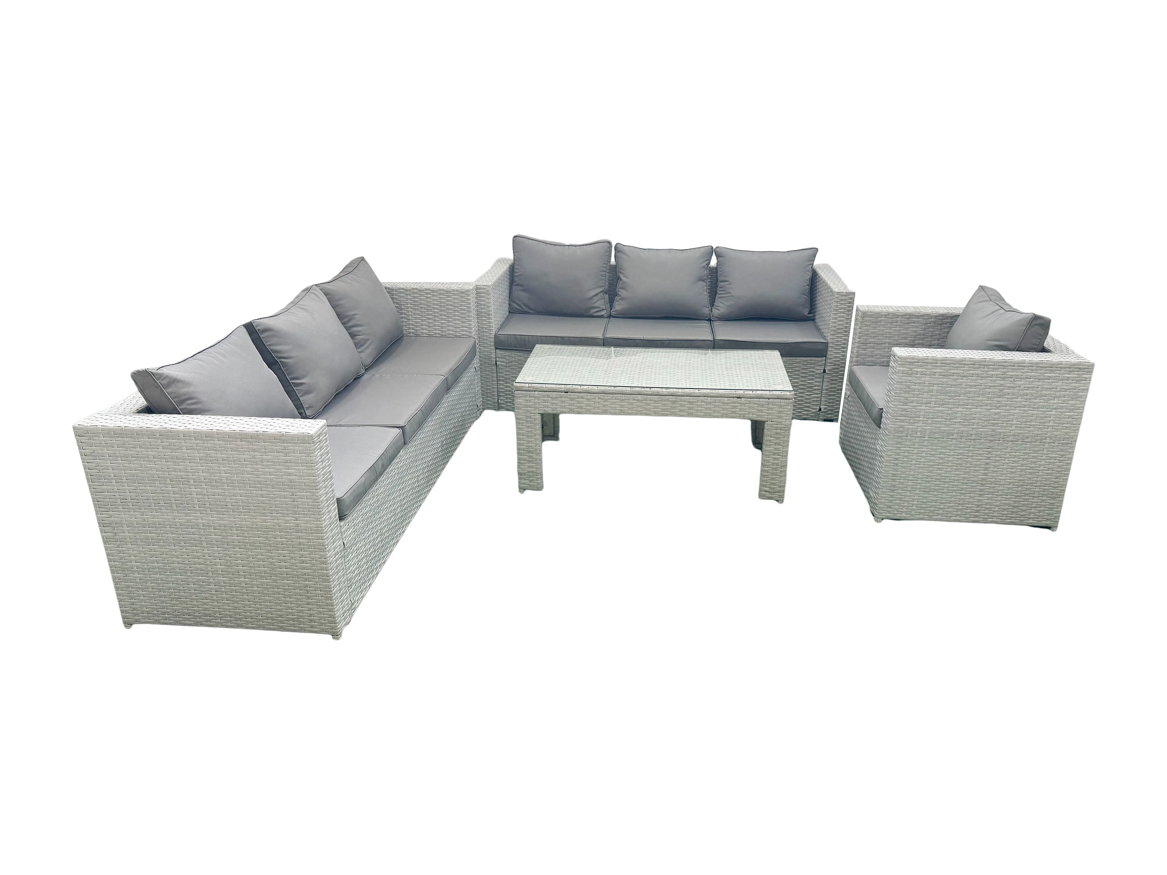 Meubles d'extérieur en rotin avec Table basse oblongue Fauteuil Gris clair mixte
