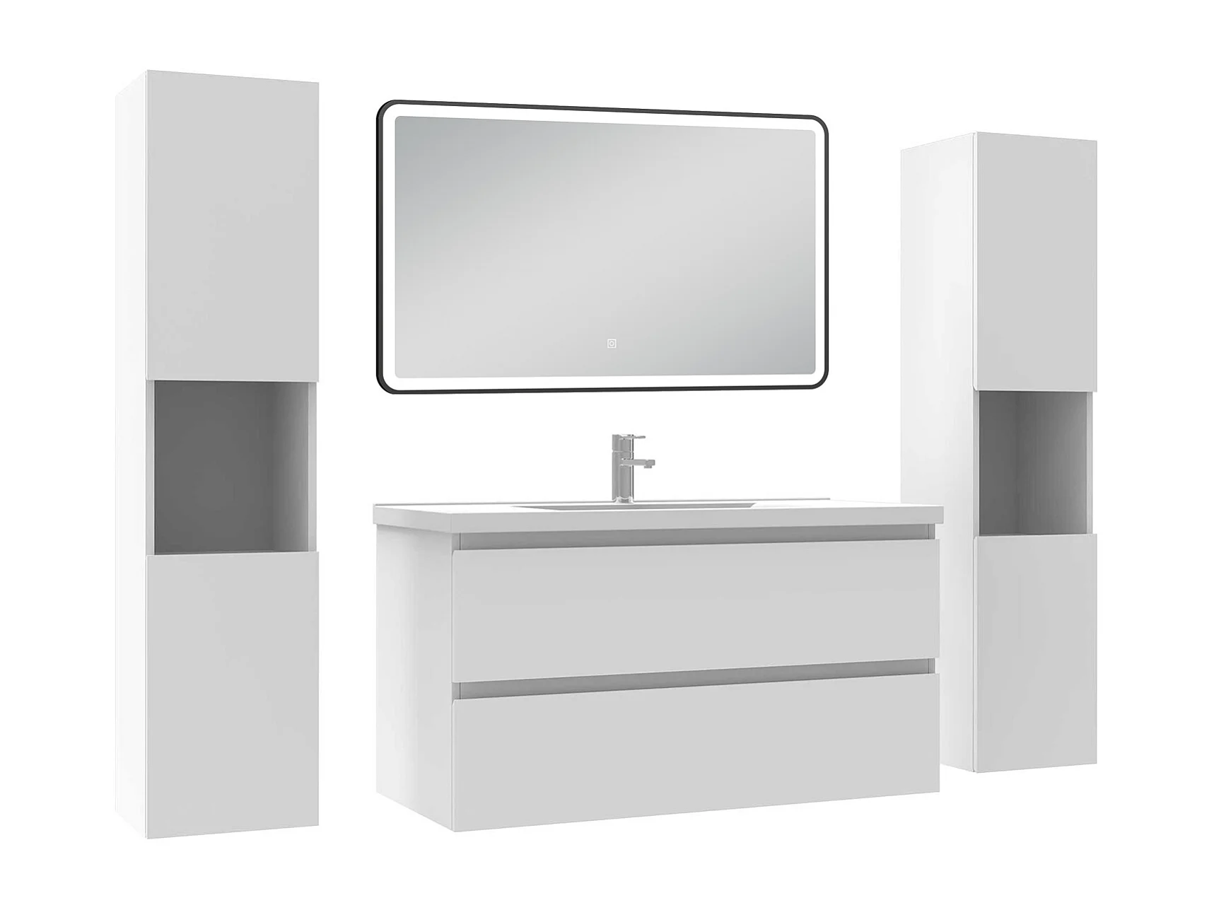 Meubles Salle de Bain 100cm avec colonne + miroir lumineux 3 couleurs + dimmable blanc