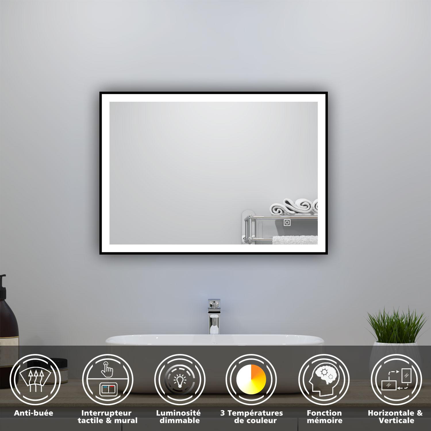 Meubles Salle de Bain 60cm avec colonne et miroir lumineux 3 couleurs et dimmable Chêne Wotan