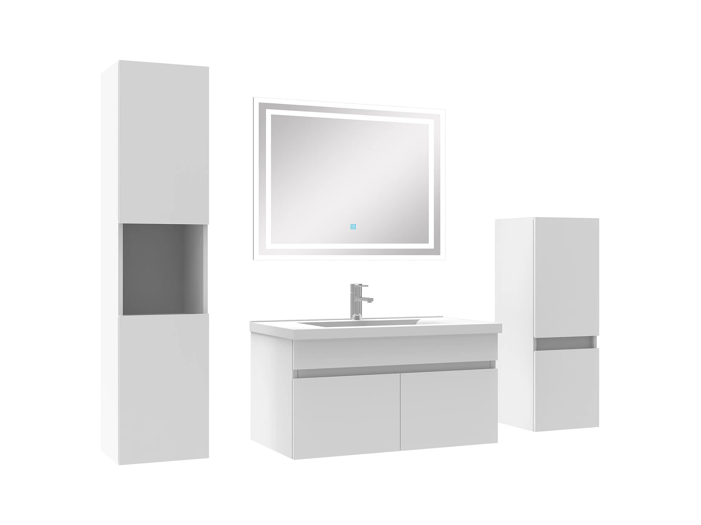 Meubles simple vasque 80cm,meuble avec colonne et miroir Blanc
