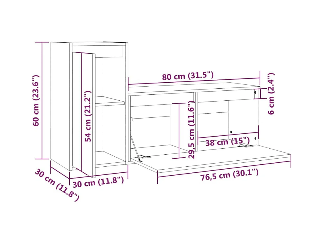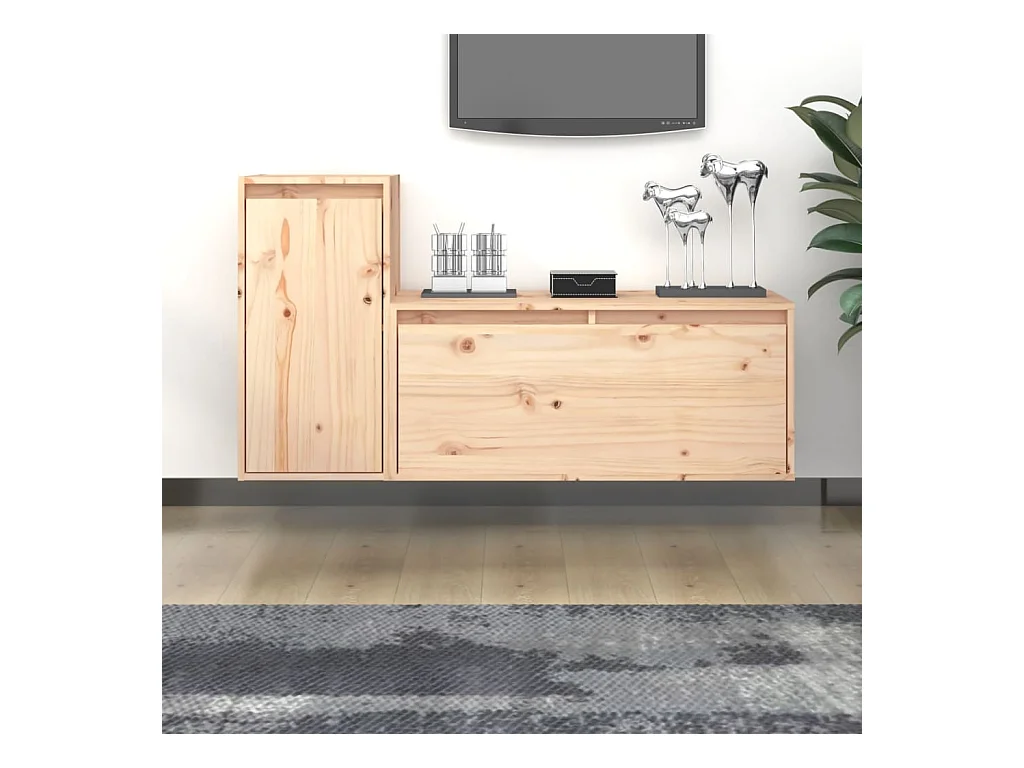 SANDY - Table basse marron 1 plateau verre 1 plateau bois Pin recyclé