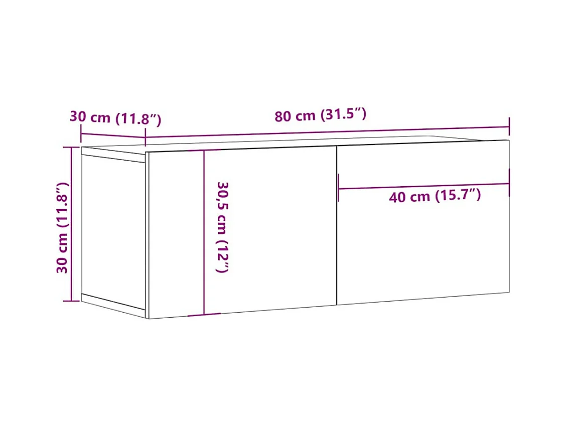 Meuble TV Noir 80x30x30 cm Bois d’ingénierie
