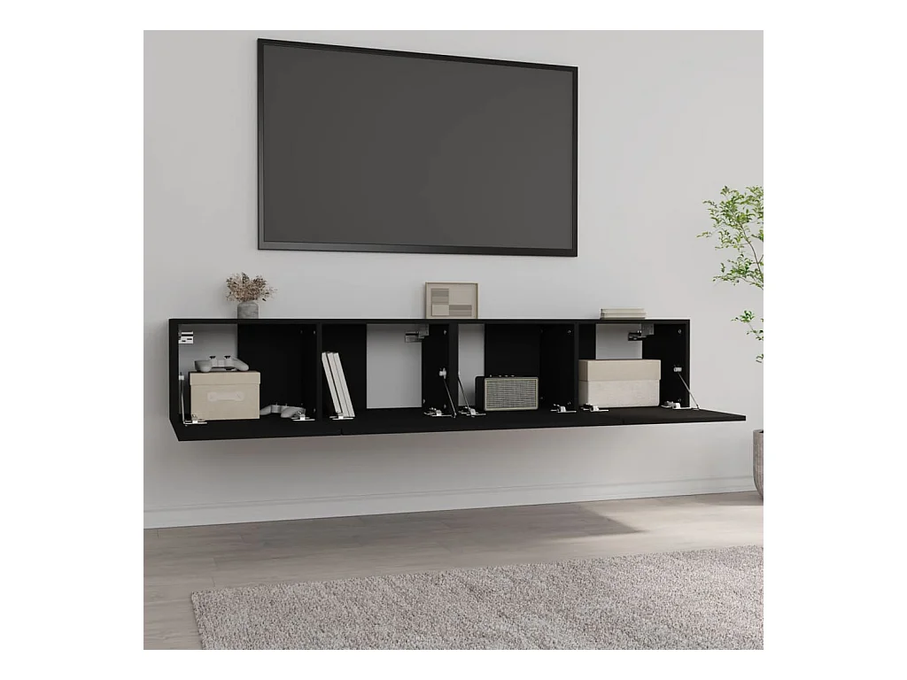 Meubles TV muraux 2 pcs noir 100x30x30 cm bois d'ingénierie