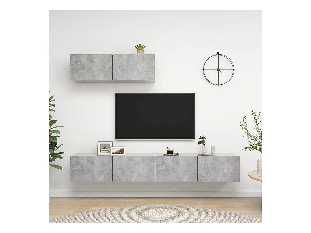 Meubles TV 3 pcs Gris béton Aggloméré WET7229
