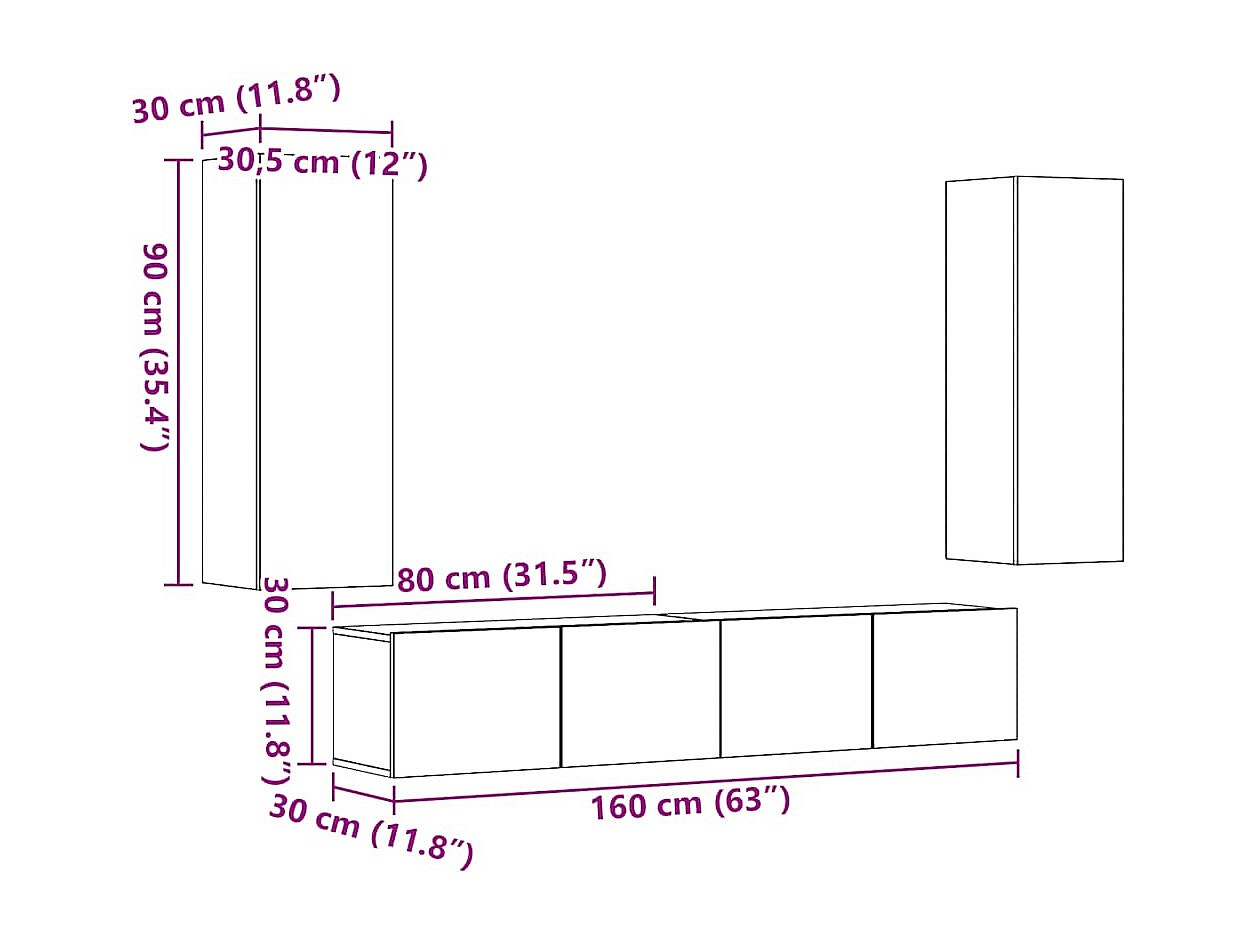 Meubles TV muraux 4 pièces chêne artisanal bois d'ingénierie