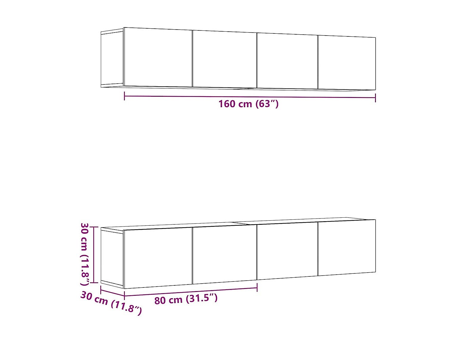 Meubles TV muraux 4 pièces chêne artisanal bois d'ingénierie