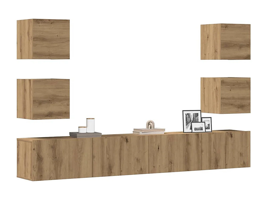 Meubles TV muraux 6 pièces chêne artisanal bois d'ingénierie