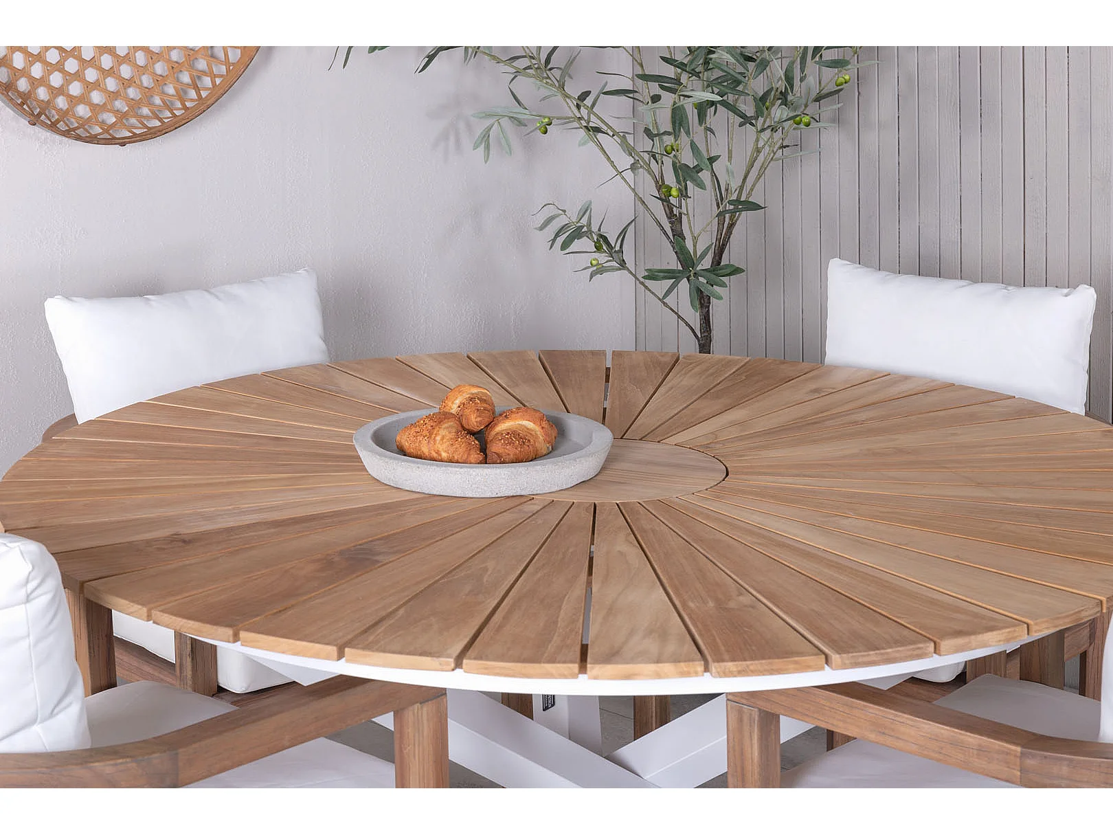 Mexico Ensemble table et chaises de jardin, table Ø140cm et 4 chaises Erica, blanc, naturel.