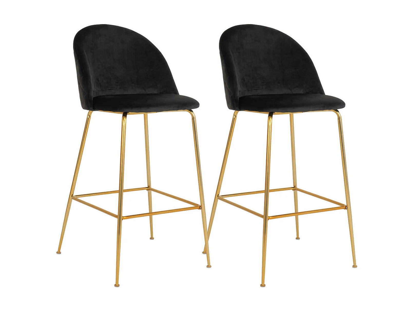 MEYRIN - Lot de 2 Chaises Hautes Velours Noir et Pieds Métal Doré