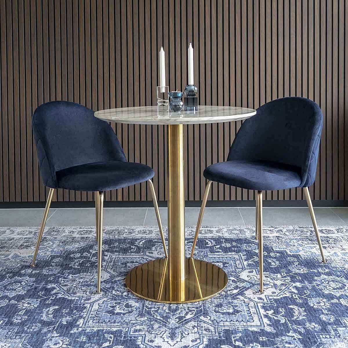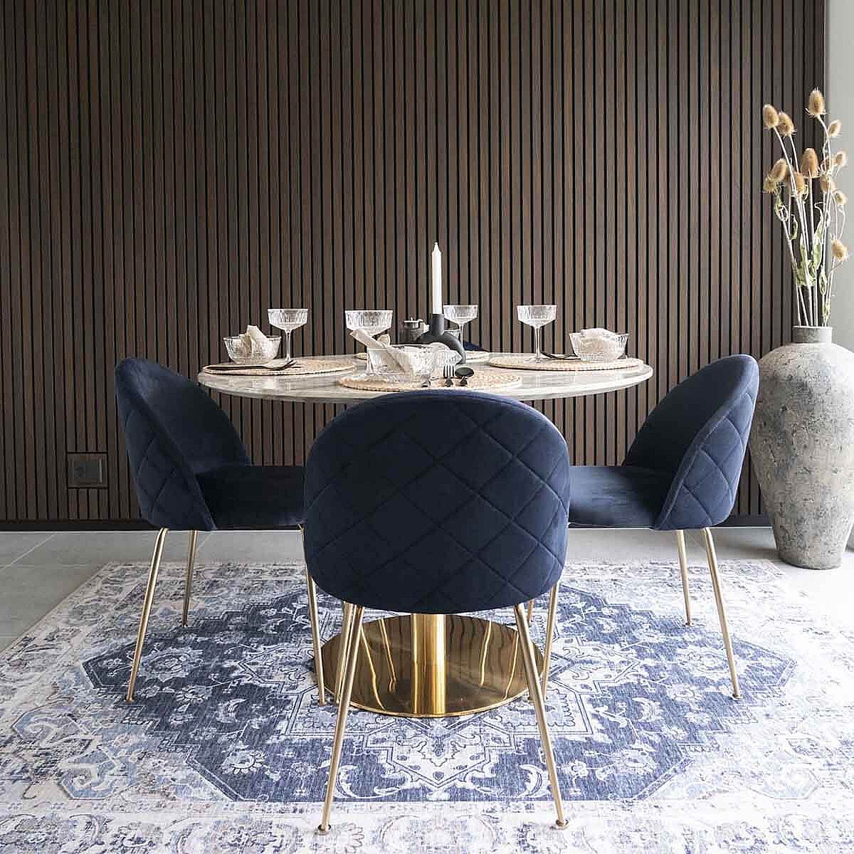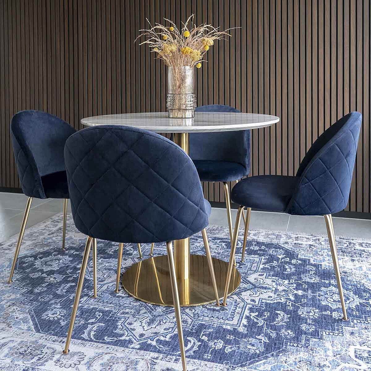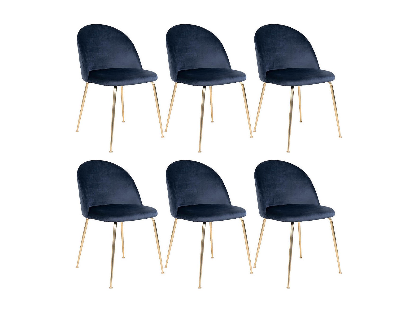 MEYRIN - Lot de 6 Chaises Velours Bleu et Pieds Métal Doré