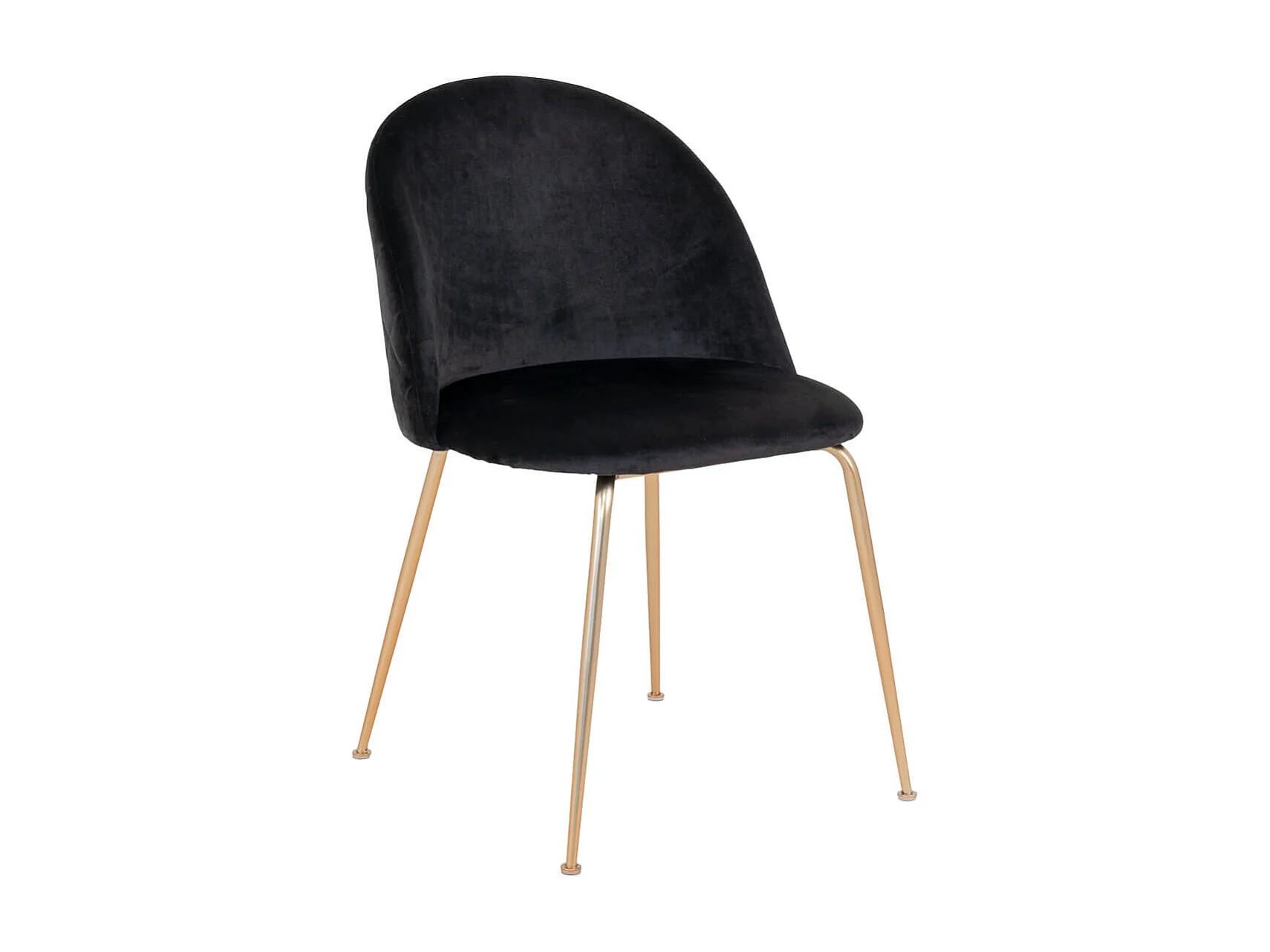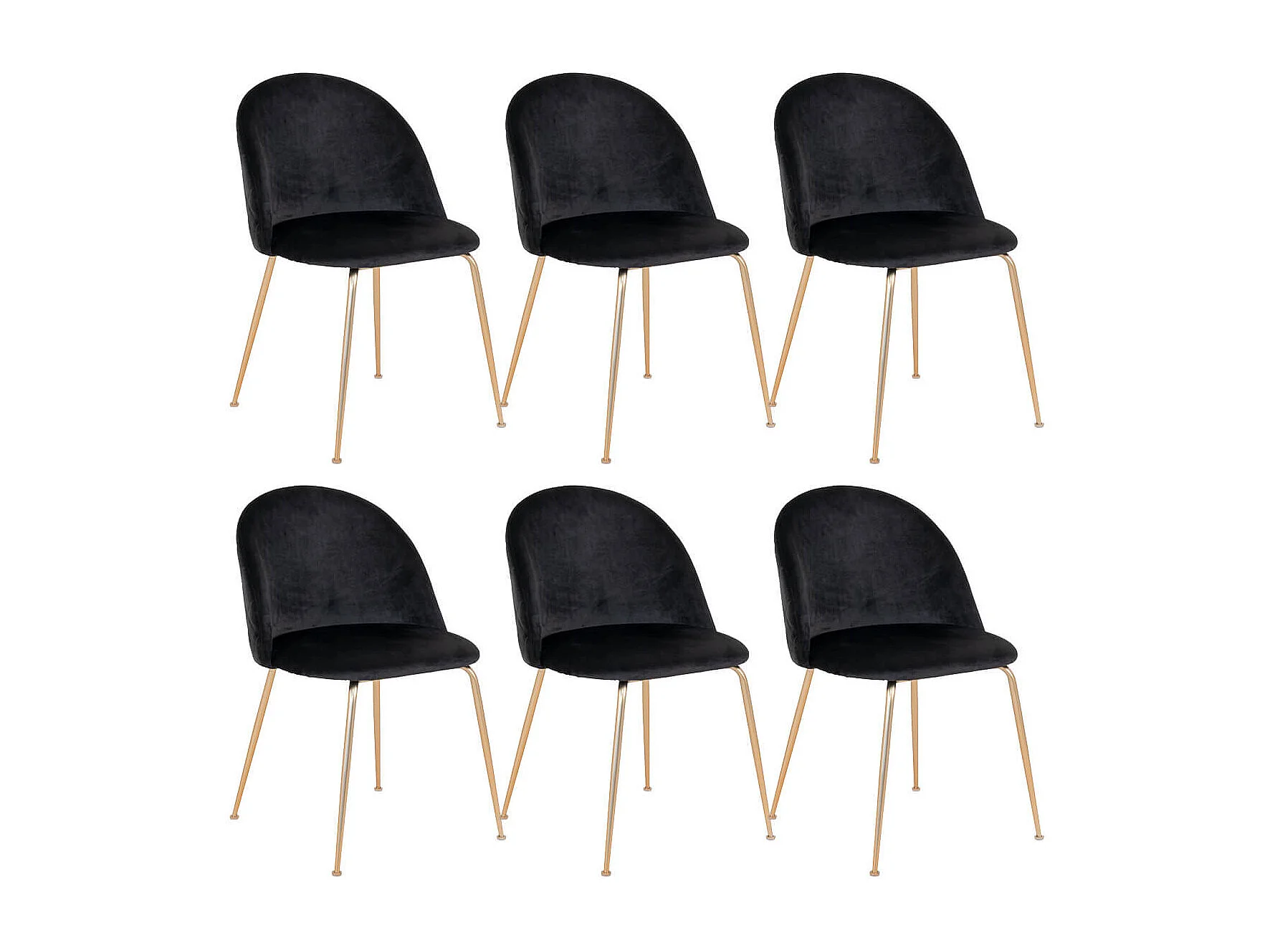 MEYRIN - Lot de 6 Chaises Velours Noir et Pieds Métal Doré
