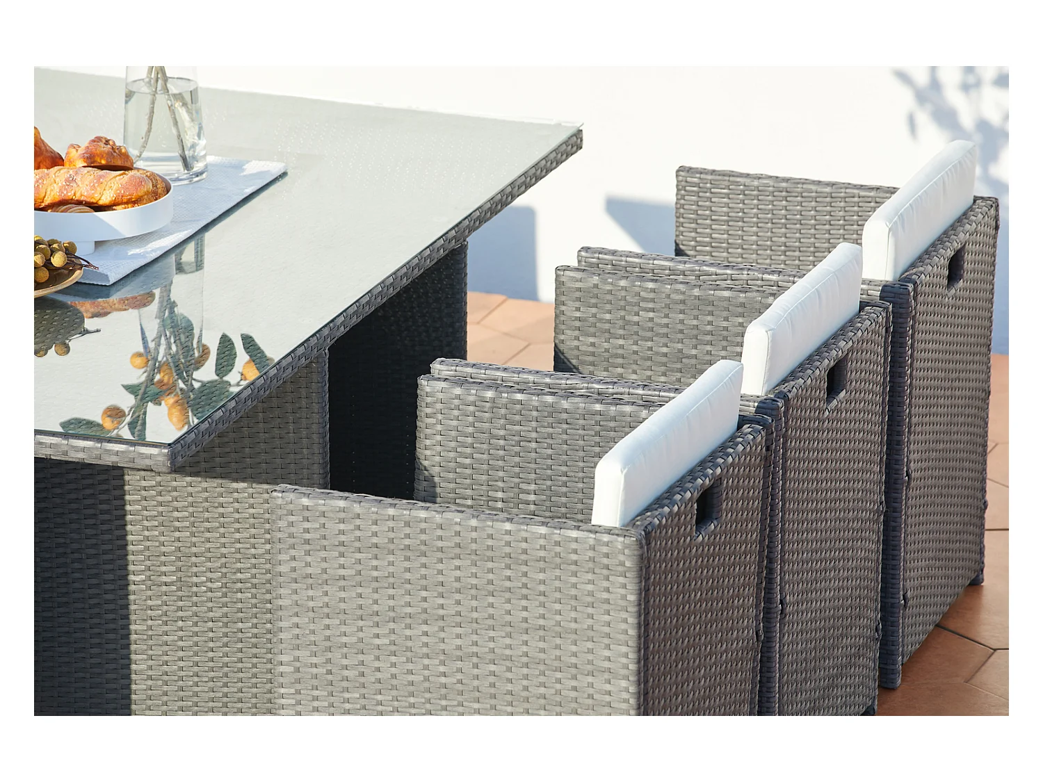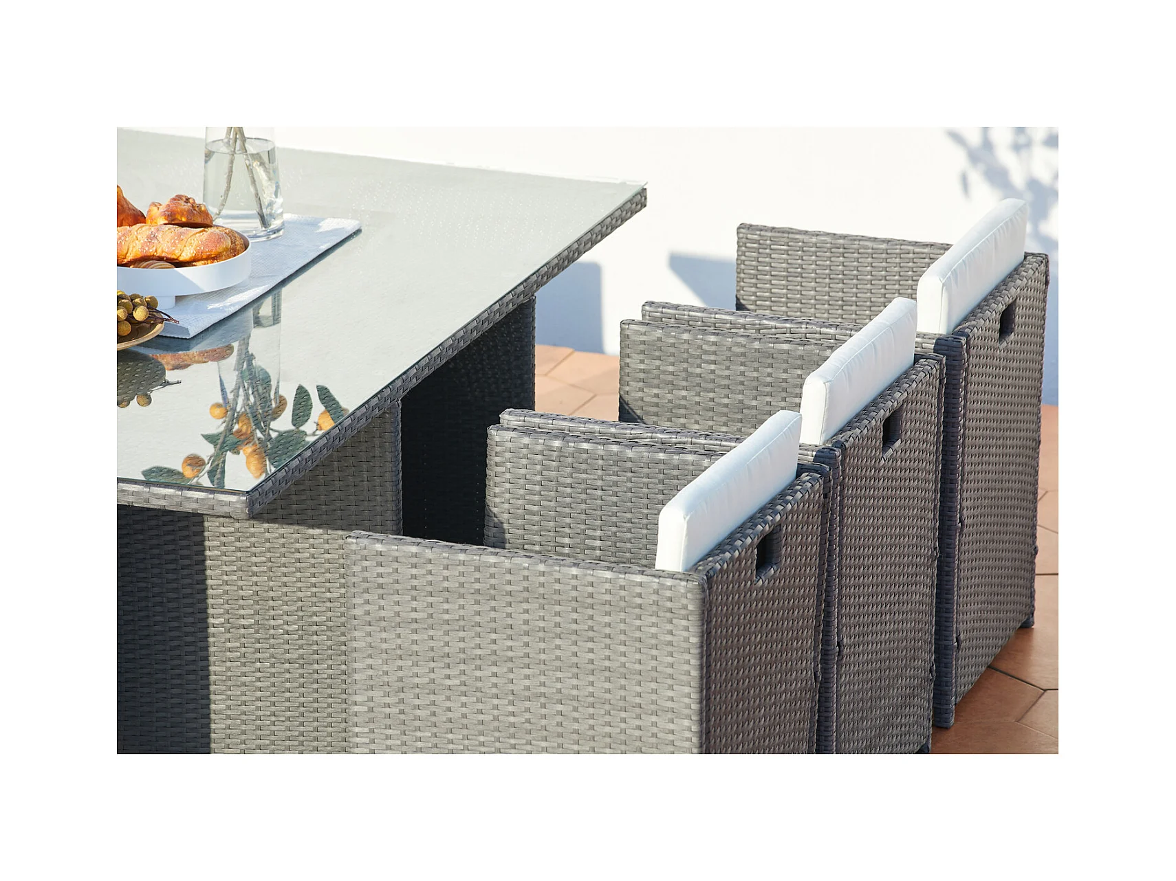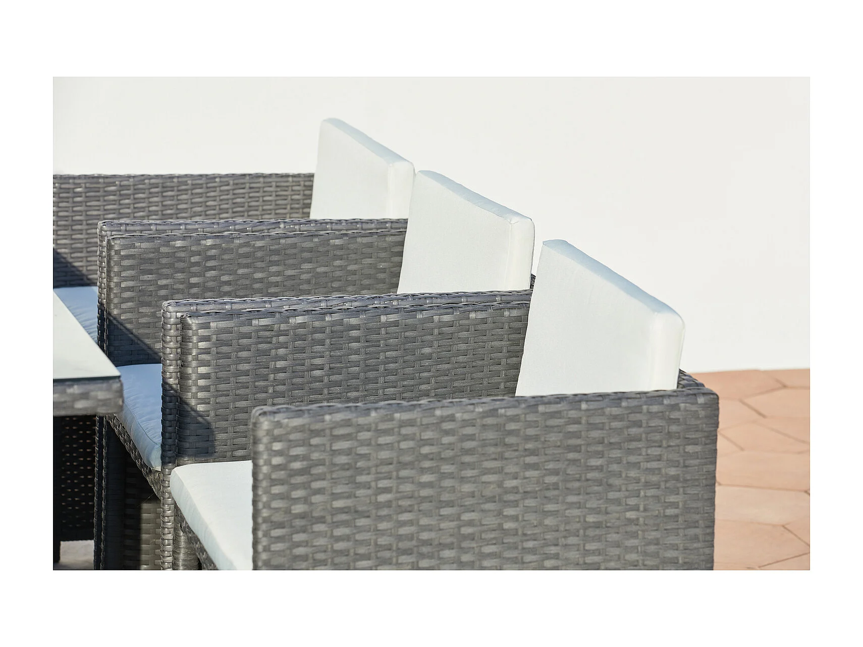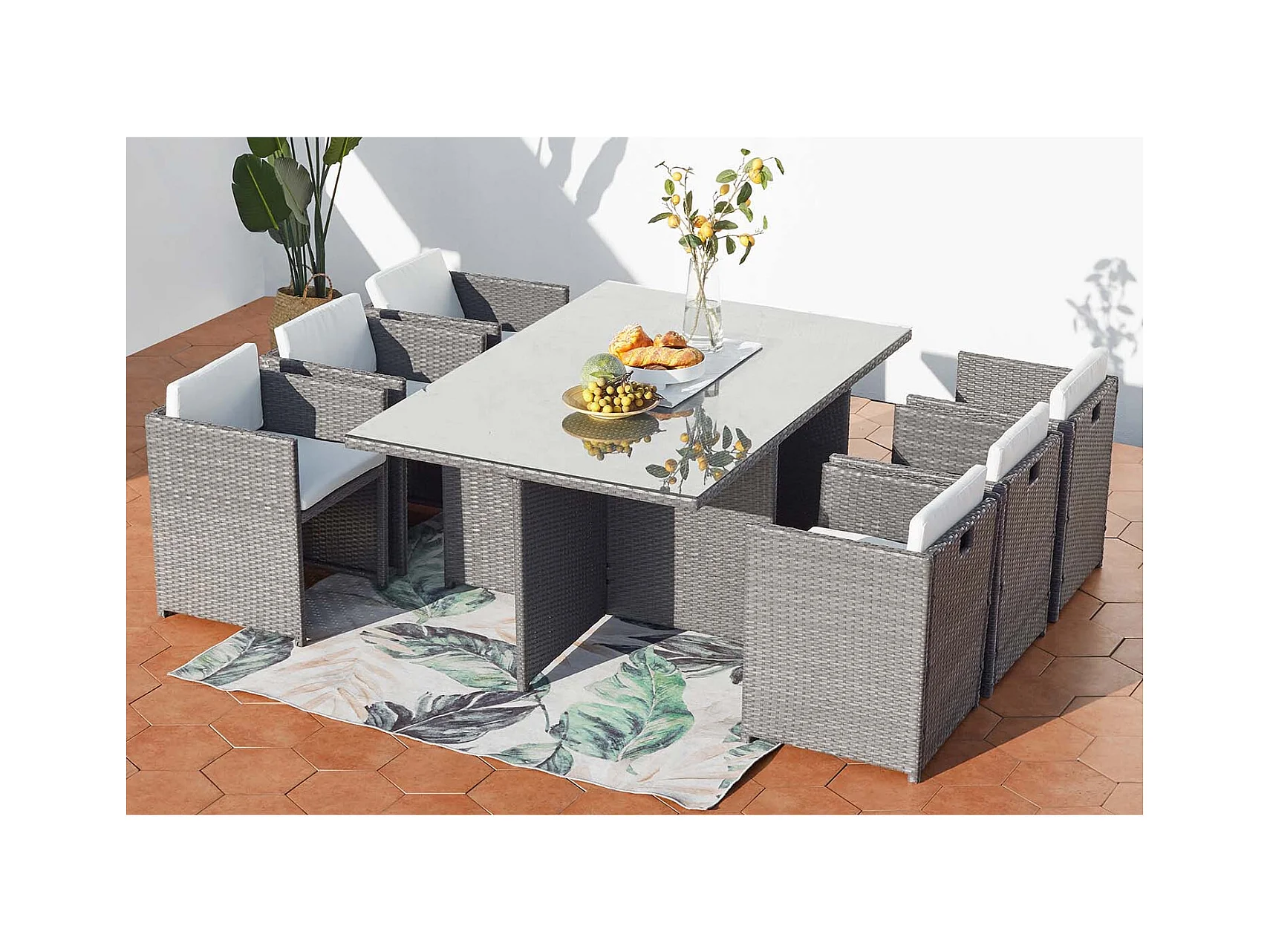 Table et chaises 6 places encastrables en résine gris-blanc MIAMI