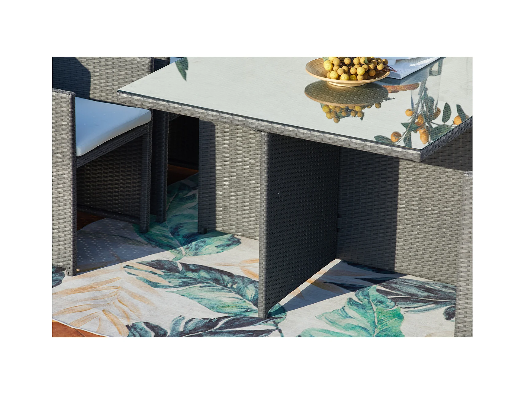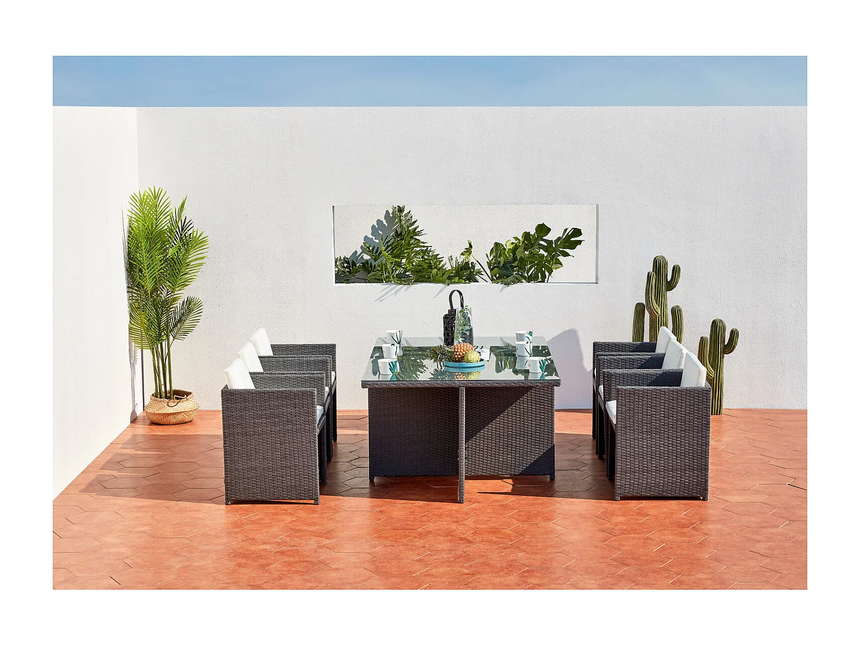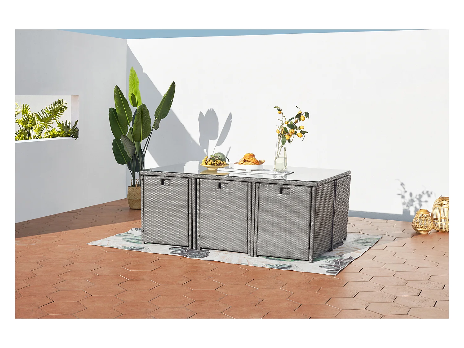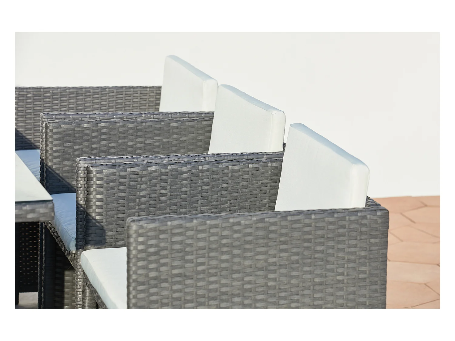 Table et chaises 6 places encastrables en résine gris-blanc MIAMI