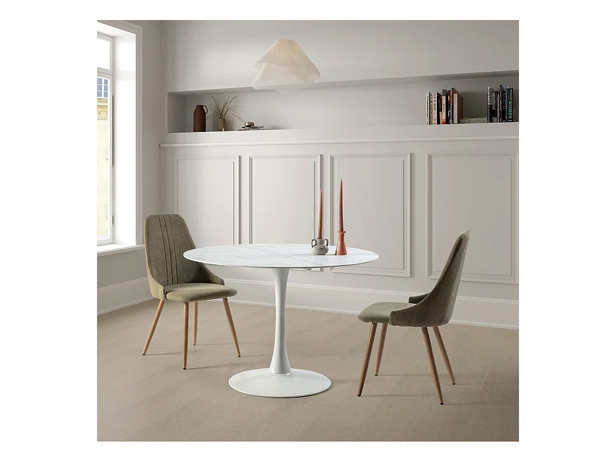 MICAT - Lot de 4 Chaises Tissu Vert 3 Lignes Surpiquées Pieds Métal Effet Bois