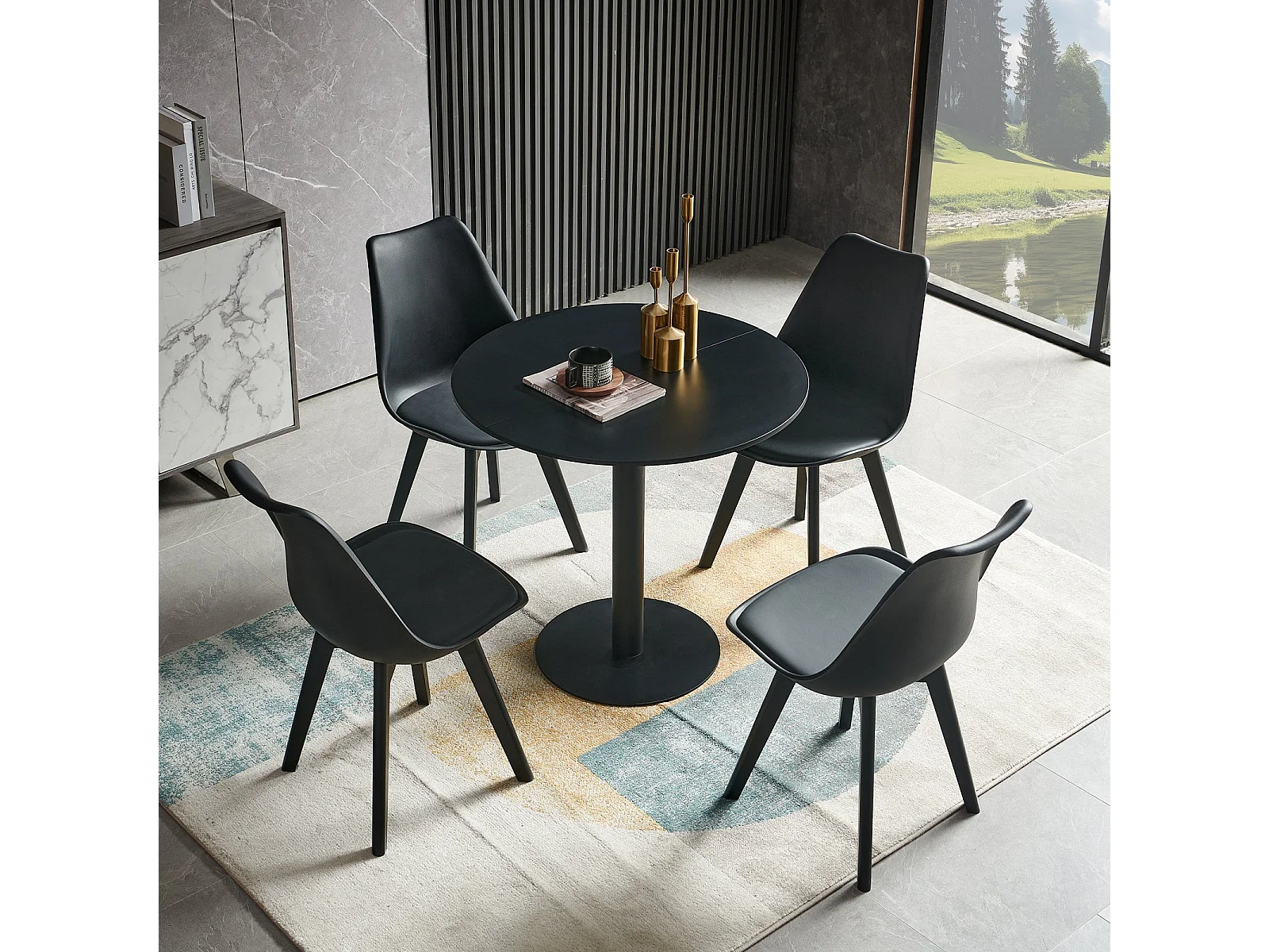 Table à Manger Ronde Moderne Laquée Noir Mat pour 2 à 4 Personnes - Pieds en Hêtre - 80 x 80 x 73 cm