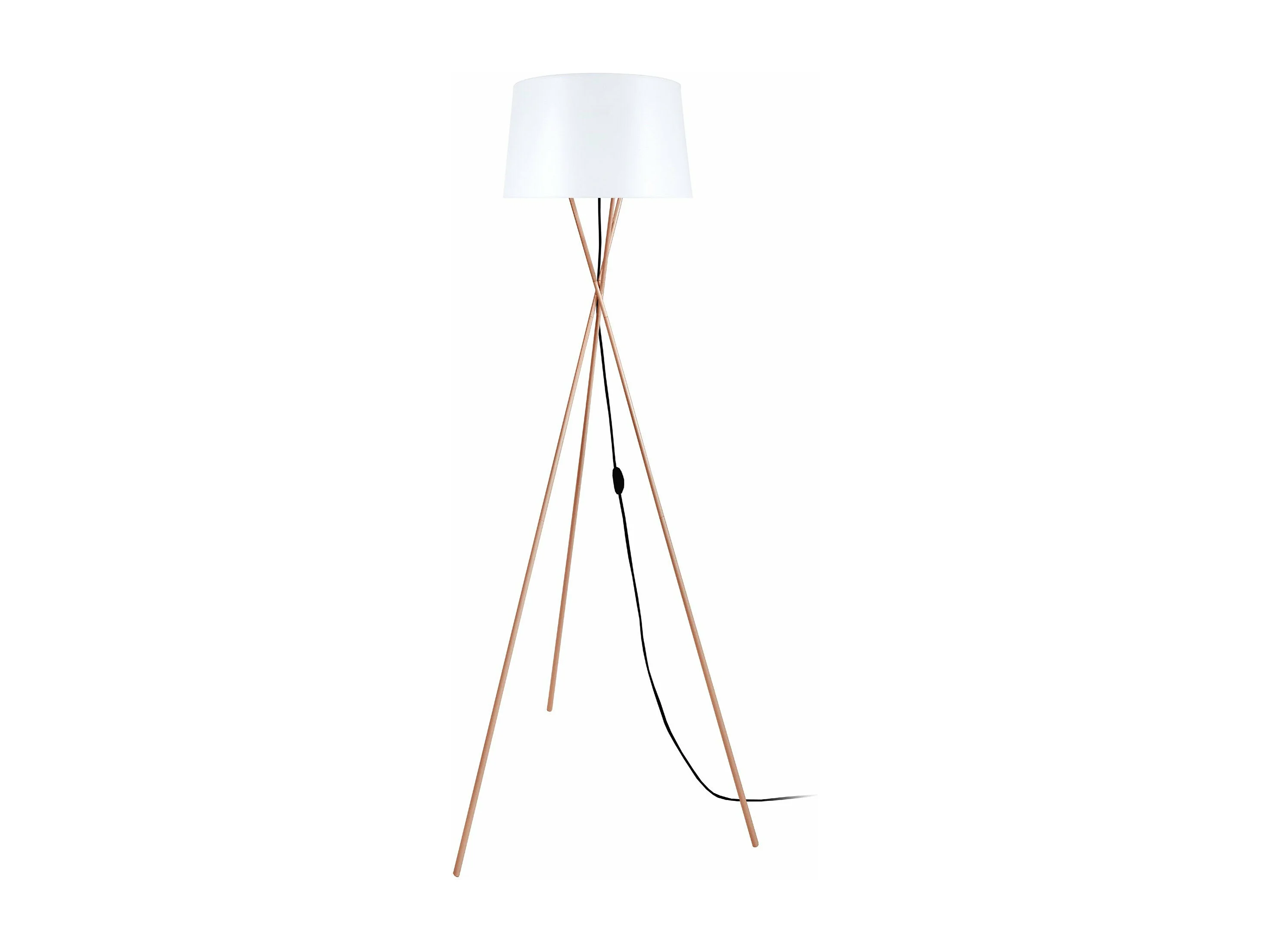 Lampadaire trépied métal, cuivre blanc 155 cm.