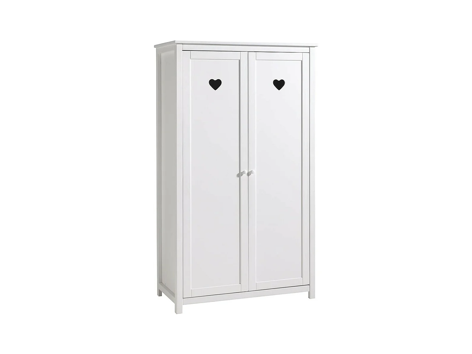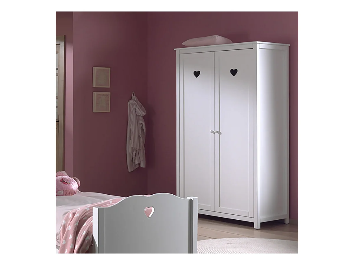 MILADY - Armoire 2 Portes Blanche Motifs Coeurs Ajourés