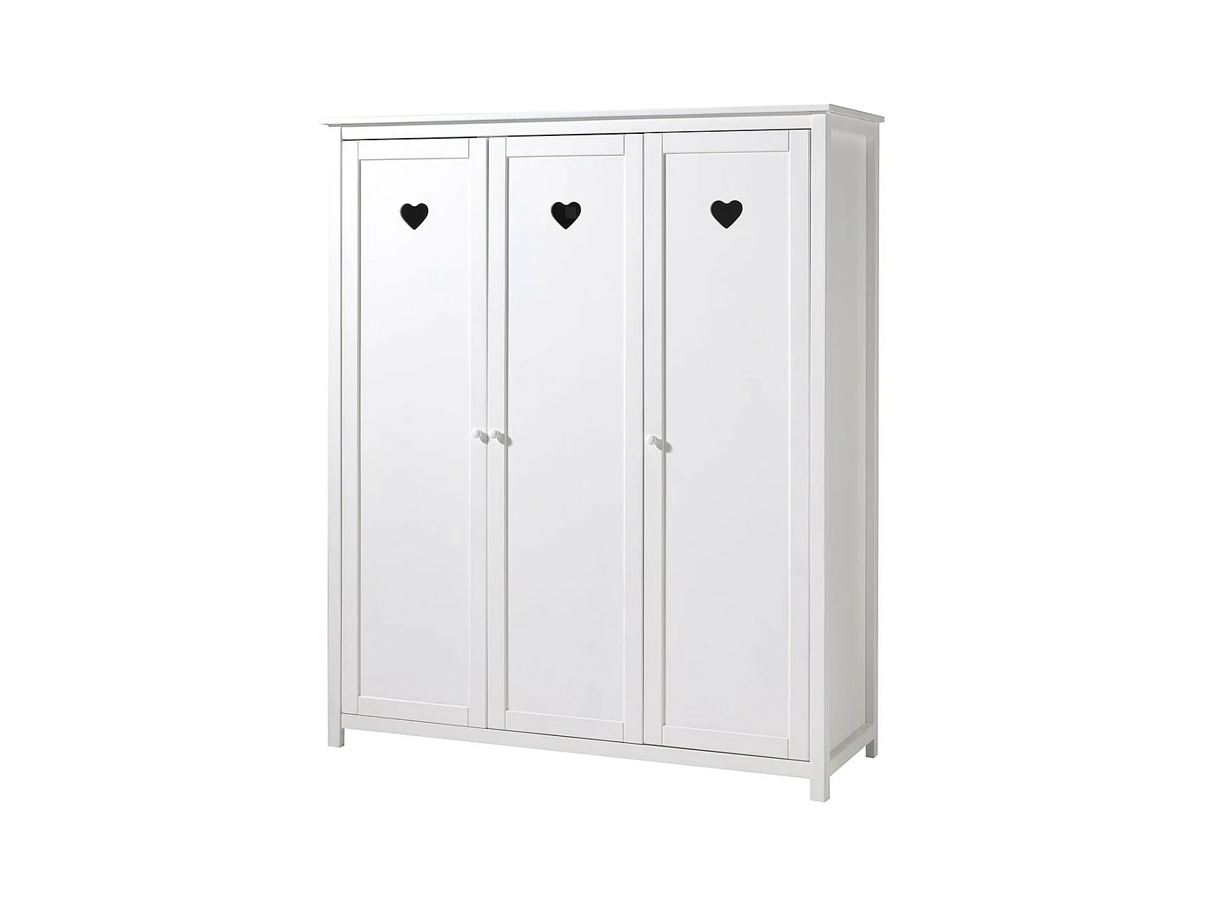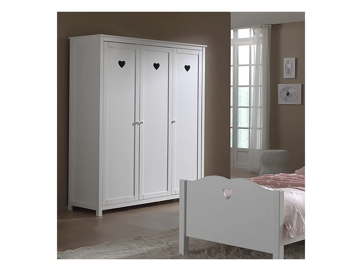 MILADY - Armoire 3 Portes Blanche Motifs Coeurs Ajourés