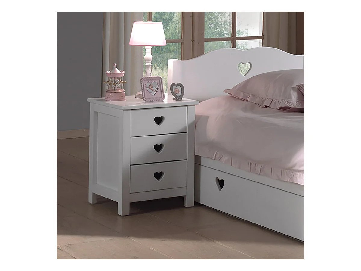 MILADY - Chevet 3 Tiroirs Blanc Poignées Coeurs Ajourées