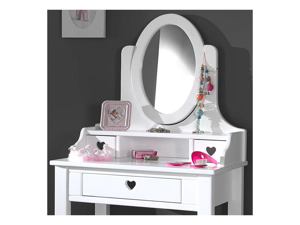 MILADY - Coiffeuse 3 Tiroirs Blanche avec Miroir Inclinable