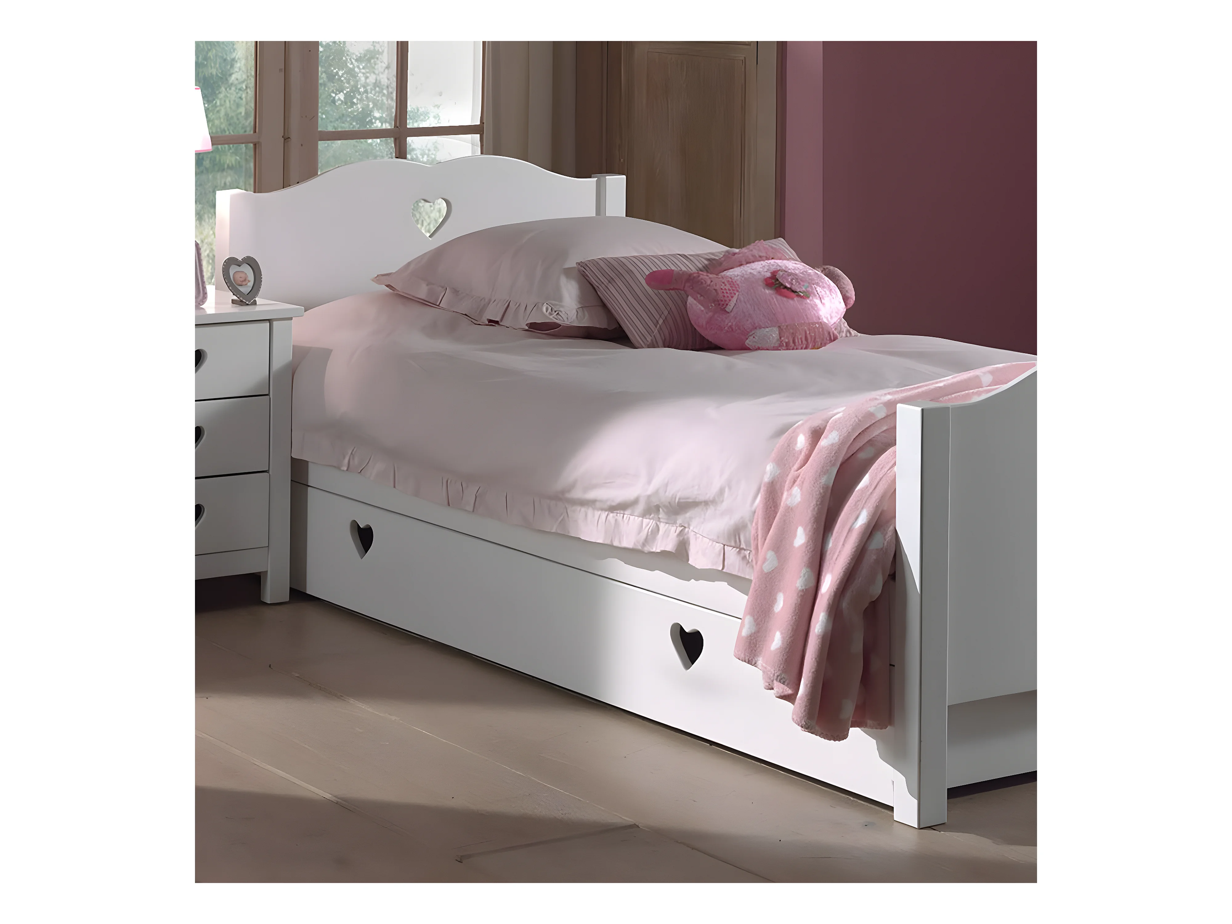 MILADY - Lit 90x200cm Blanc avec Tiroir de Lit Motifs Coeurs
