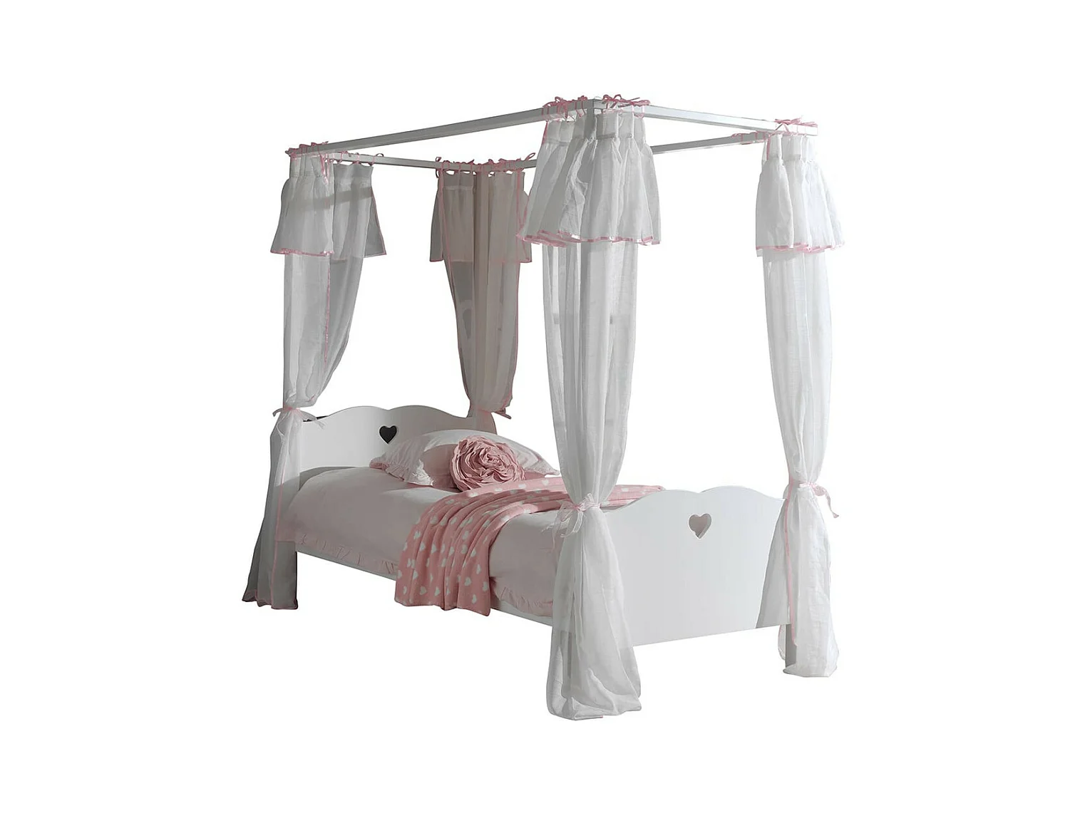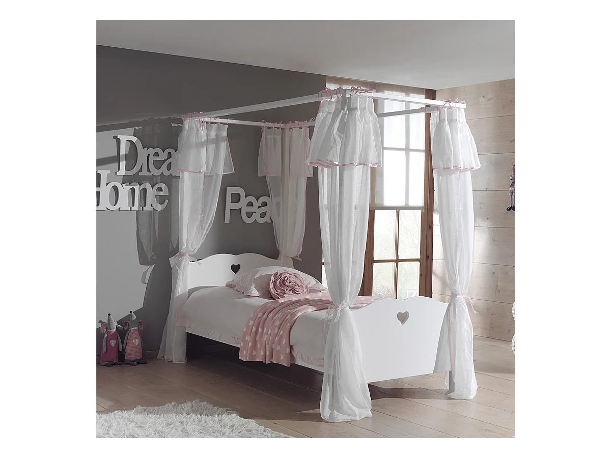 MILADY - Lit à Baldaquin 90x200cm Blanc avec Rideaux