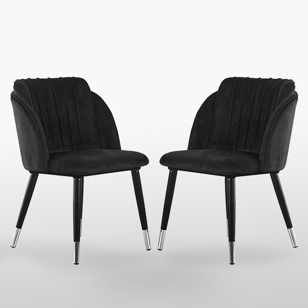 MILANO - Lot de 2 Chaises de Salle à Manger en Velours - Style Vintage - Noir