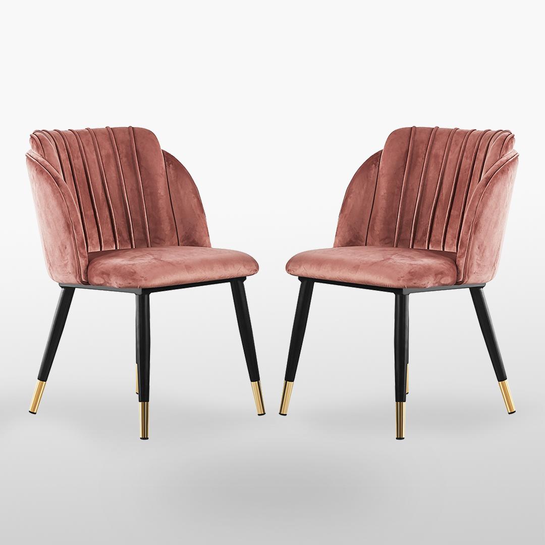 MILANO - Lot de 2 Chaises de Salle à Manger en Velours - Style Vintage - Rose