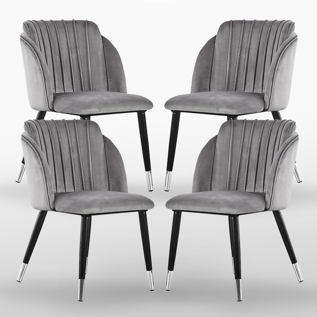 MILANO - Lot de 4 Chaises de Salle à Manger en Velours - Style Vintage - Gris