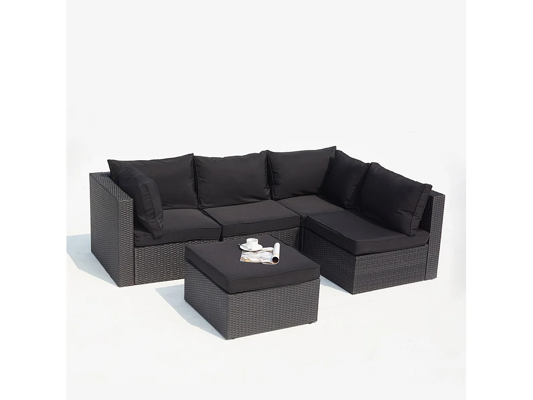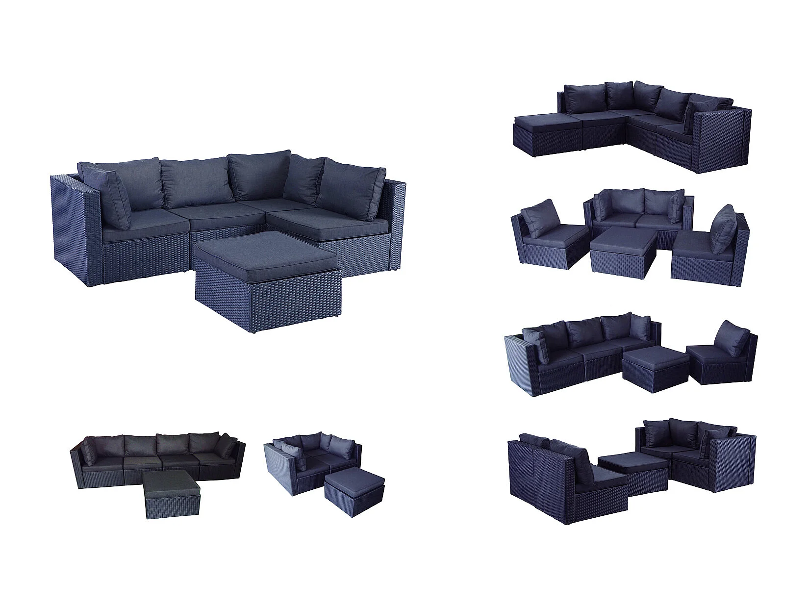 Salon de jardin modulable 5 places en résine tressée noir MILANO