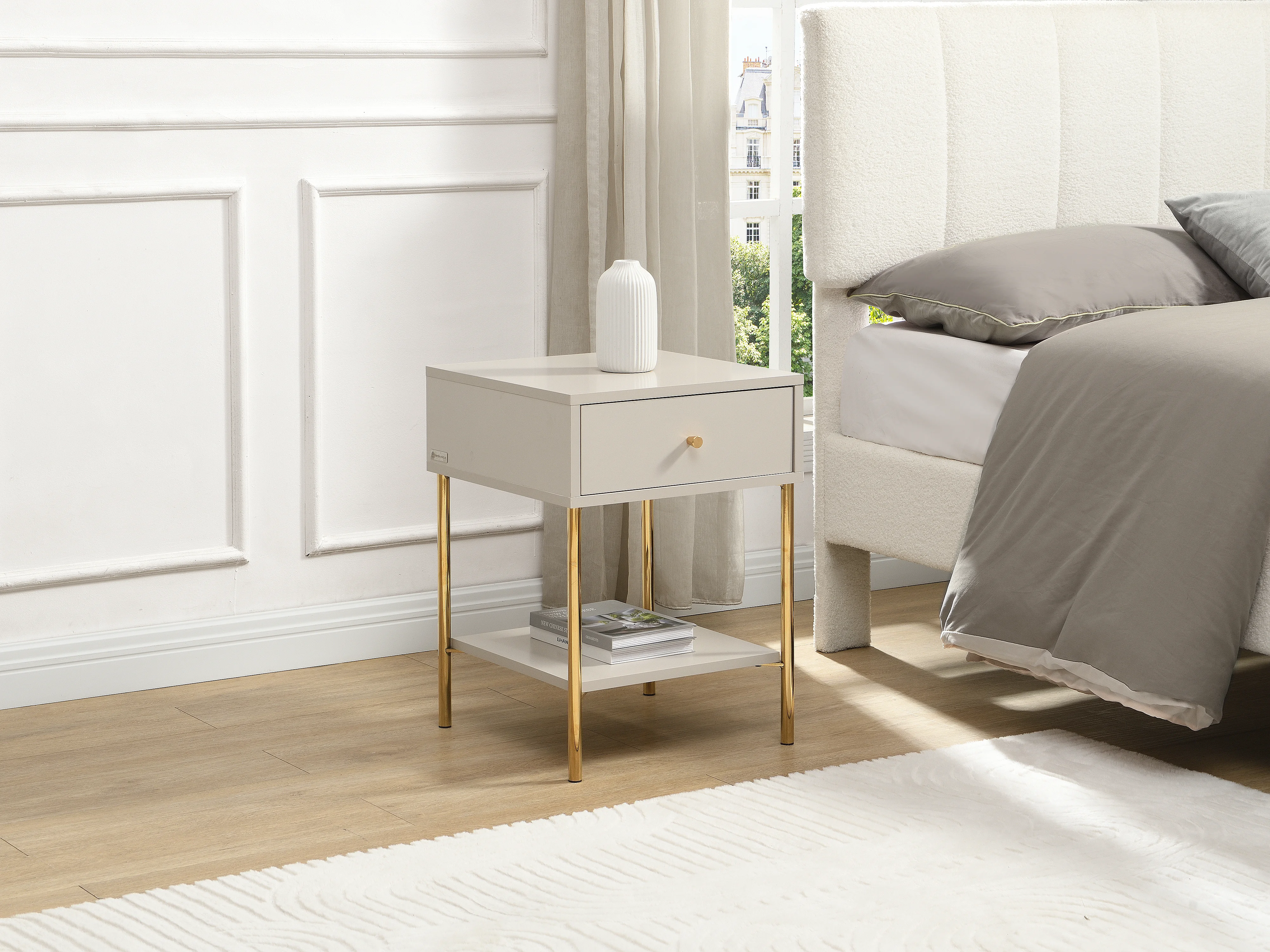 Lot de 2 tables de chevet 1 tiroir - MDF et métal - Beige et doré - MILAVIA